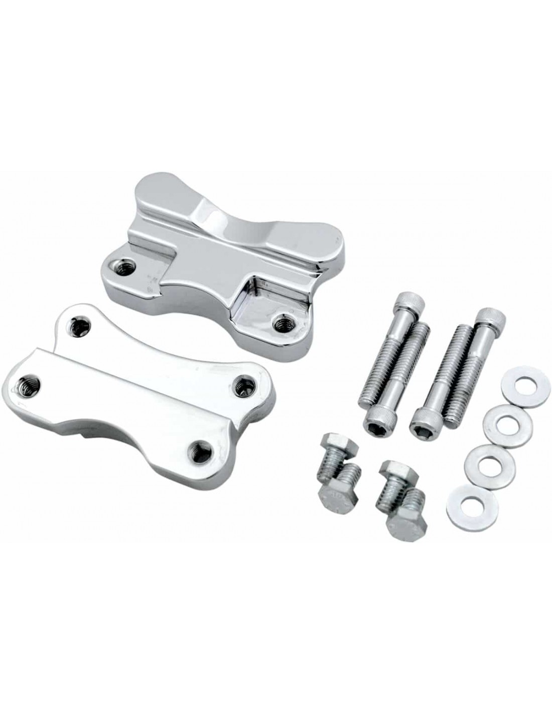 Adattatore parafango-forcella per ruota da 21"Gli adattatori sollevano il parafango anteriore di serie per consentire il montaggio con cerchi da 21" In alluminio billet Prodotto negli Stati Uniti
