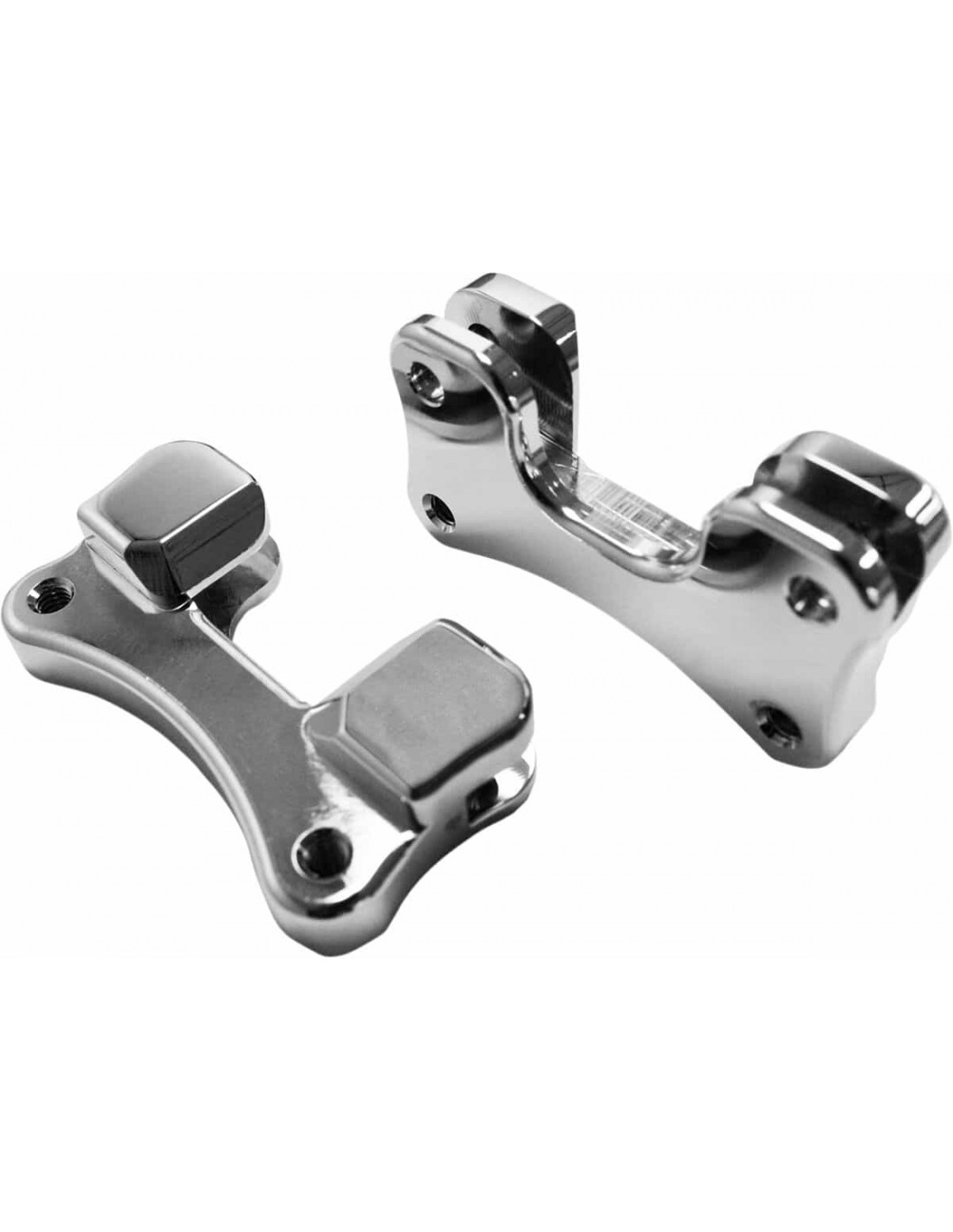 Adattatore parafango-forcella per ruota da 21"Adattatori in alluminio per un montaggio di parafanghi anteriori custom Compatibili con la maggior parte dei parafanghi senza fori di 5-1 /2" di larghezza per cerchi di 3" x 21" Spessore: 1,250" Made in USA Fori di montaggio parafango ciechi aventi diametro di 5/16" e distanza l'uno dall'altro di 3-3/16" nonché fori di montaggio stelo forcella di 5/16" con distanza l'uno dall'altro di 3-1/2 "