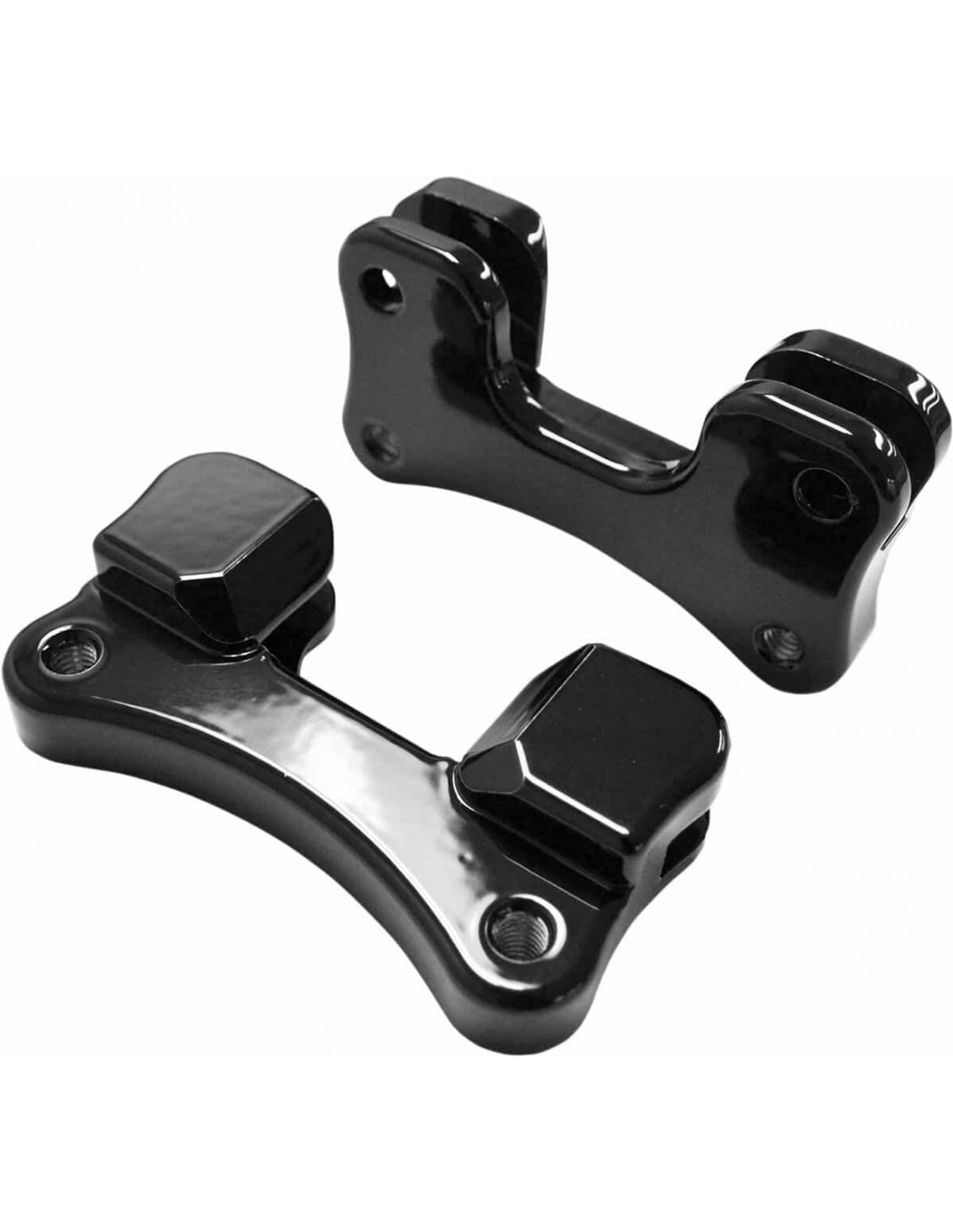 Adattatore parafango-forcella per ruota da 21"Adattatori in alluminio per un montaggio di parafanghi anteriori custom Compatibili con la maggior parte dei parafanghi senza fori di 5-1 /2" di larghezza per cerchi di 3" x 21" Spessore: 1,250" Made in USA Fori di montaggio parafango ciechi aventi diametro di 5/16" e distanza l'uno dall'altro di 3-3/16" nonché fori di montaggio stelo forcella di 5/16" con distanza l'uno dall'altro di 3-1/2 "