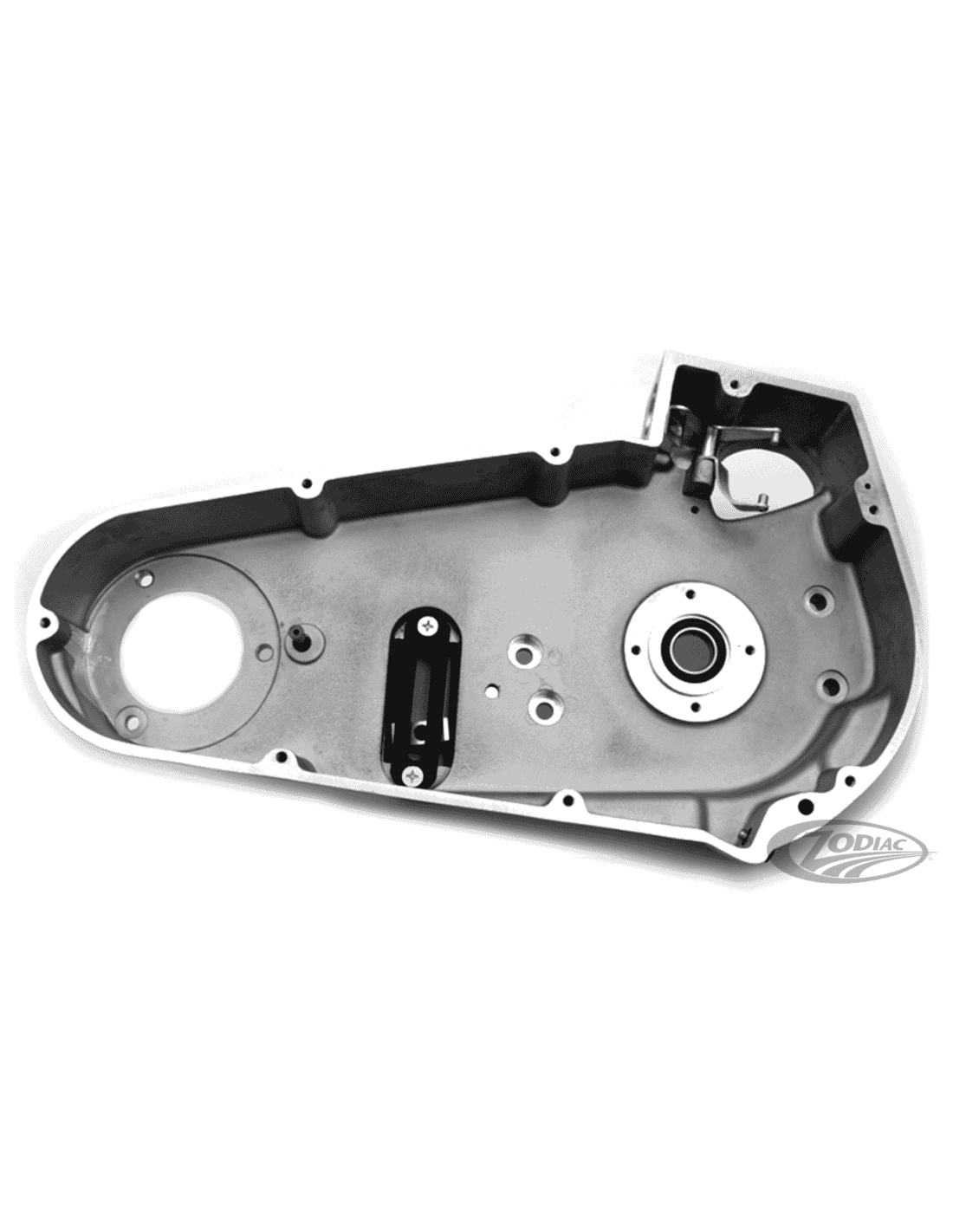 V-TwinReplica della primaria interna con finitura in fusione di alluminio naturale che include il cuscinetto per l'albero principale del cambio e la piastra di ritenuta regolabile. La fusione è leggermente più grande dell'originale. L'installatore può fresare o lucidare il bordo dell'interno per un perfetto abbinamento.