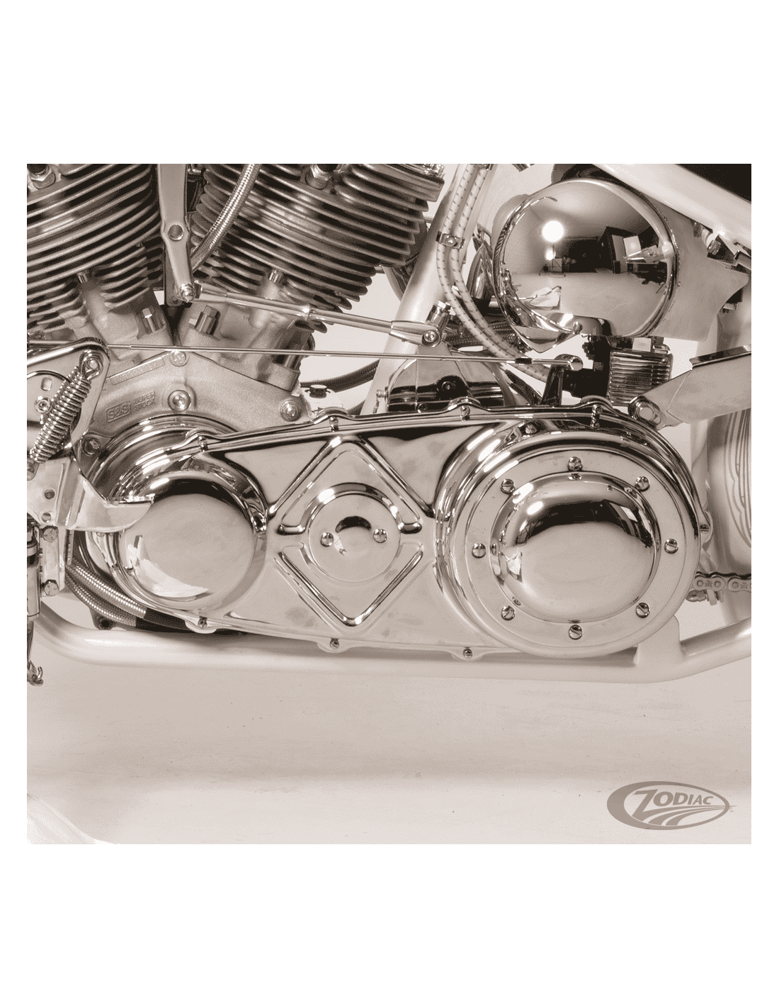 I coperchi primari interni ed esterni in acciaio stampato sono noti anche come primari "stagno". Disponibile per tutti i Big Twin 4 marce. Possono essere usati come ricambio degli originali o per personalizzare i modelli più recenti senza avviamento elettrico.
