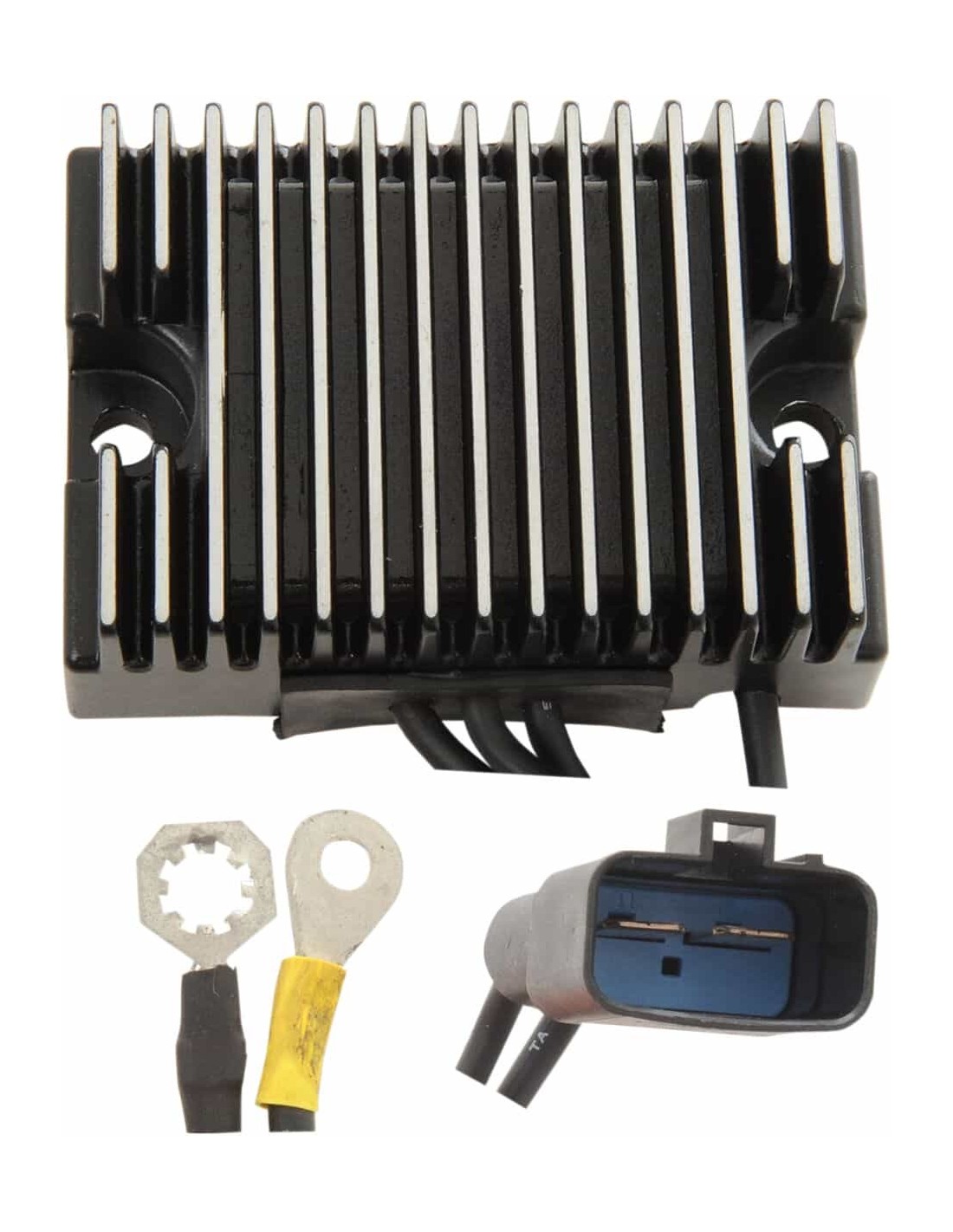 Drag SpecialtiesRegolatore a stato solidoAffidabili regolatori di tensione da 12 V, protettive da una robusta struttura in lega di alluminio Forniscono tutti una tensione regolata con precisione a tutti i carichi elettrici, non hanno contatti a relè che possono usurarsi o deteriorarsi e sono a tenuta stagna per una protezione completa da umidità e urti