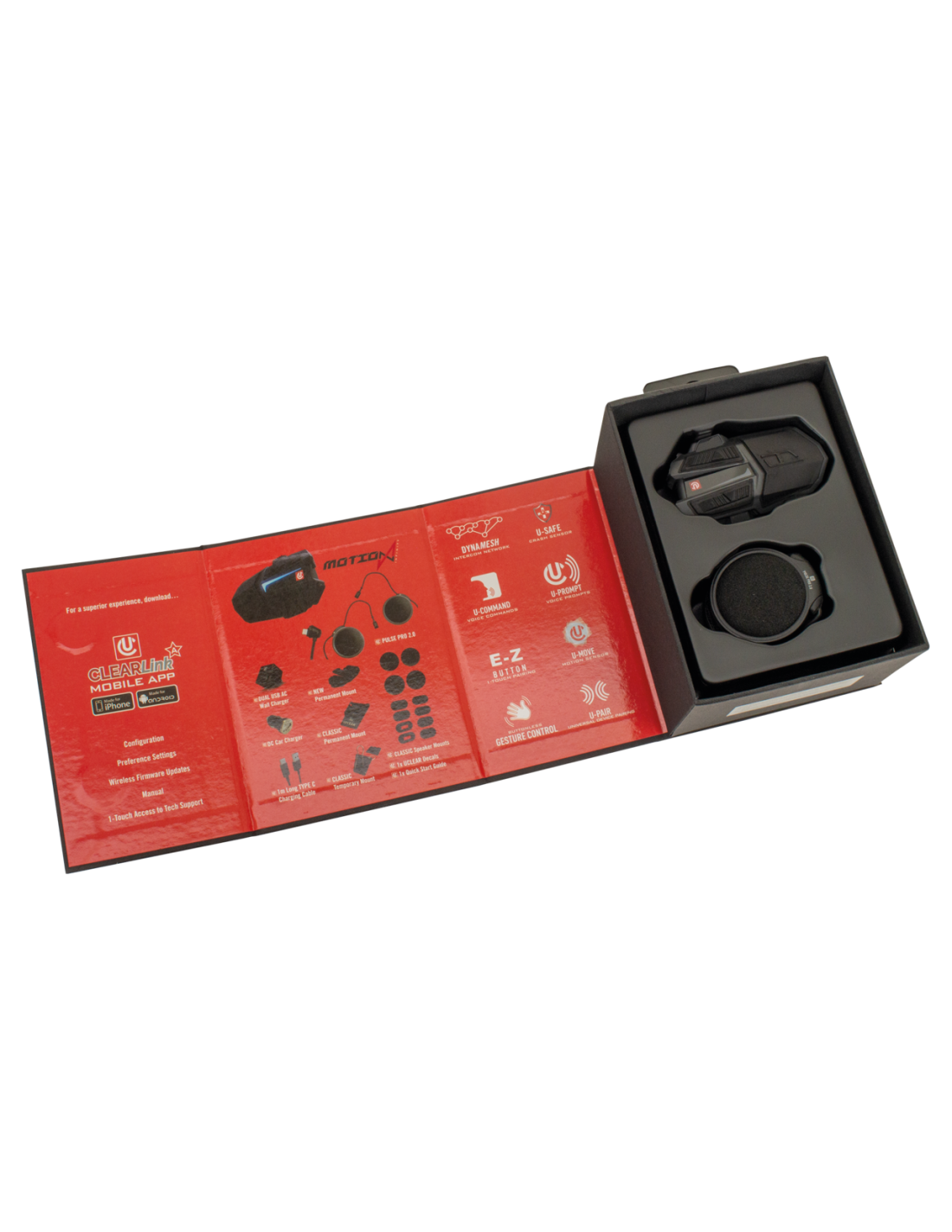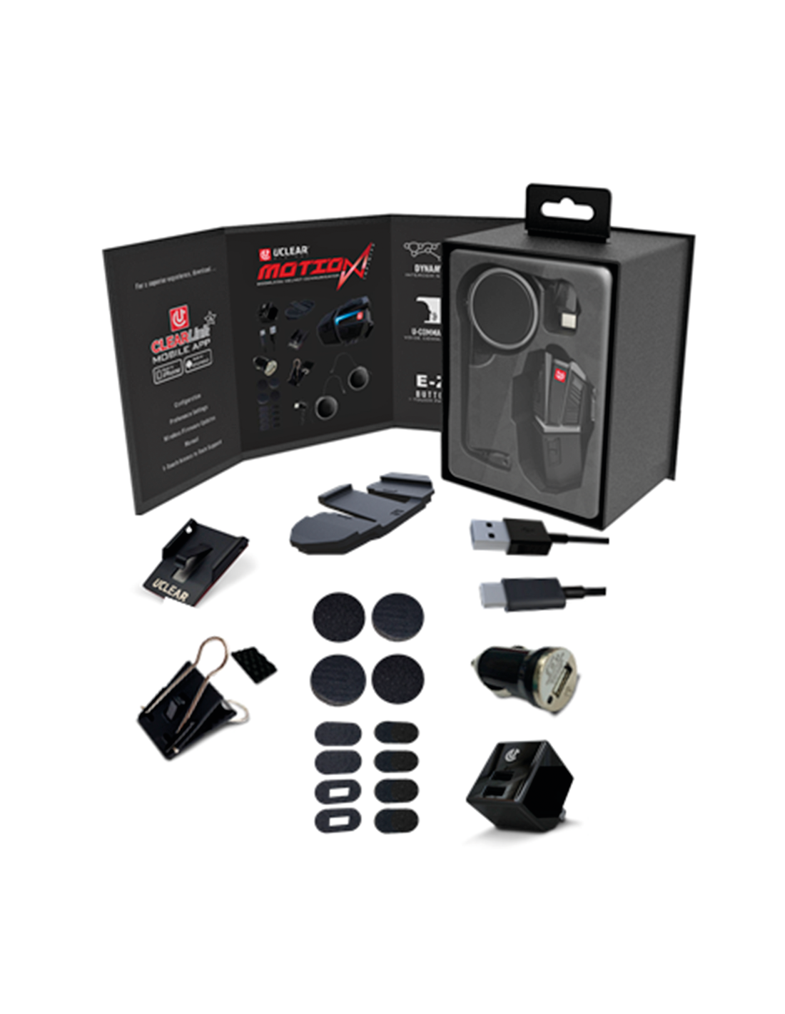 UClear Digital HeadsetsThis 5.0 Bluetooth headset is a perfect group intercom that connects an unlimited number of riders up to a 1200 meter range. All other functions such as telephoning, listening to music or navigation are also supported. The headset can be connect to different Bluetooth devices from any manufacturer. The Motion Infinity can connect with an unlimited amount of riders and has an U-Safe Crash sensor that alerts up to 3 contacts via SMS with GPS location in the event of strong helmet impacts. Motion headset comes with three brackets and is suitable for all motorcycle helmets.