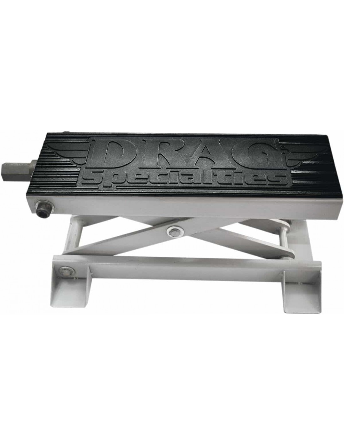 Drag SpecialtiesSollevatore motoIl resistente rivestimento superiore in gomma protegge la moto impedendo che gli scivoli mentre si alza o si abbassa il sollevatore Sollevatore moto a forbice robusto ma conveniente per il sollevamento di motociclette a scopo di manutenzione o pulizia Abbastanza forte da sollevare tutta la moto Molto stabile grazie all'ampia superficie di appoggio Altezza ribassata di 3- 1/2" Non utilizzare pistole ad aria compressa o elettriche per alzare e abbassare il sollevatore