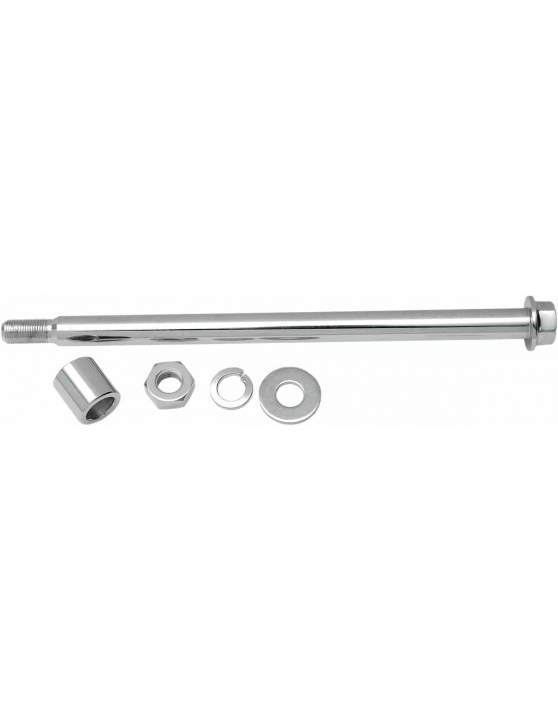 Kit asse posterioreLa lunghezza dell'asse posteriore è misurata dall'interno della testa del bullone all'estremità delle filettature La finitura cromata brillante sull'asse e sulla bulloneria abbellisce la tua bici< /li> Il kit include asse, distanziali, dadi e rondelle Realizzato in acciaio al cromo I modelli con ABS richiedono un solo distanziale all'interno del kit.