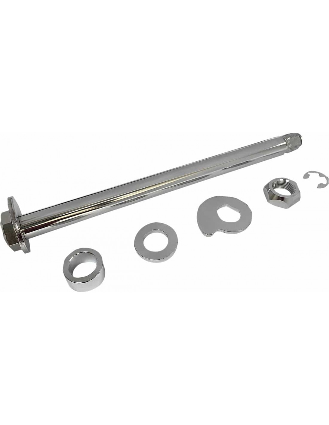 Kit asse posterioreLa lunghezza dell'asse posteriore è misurata dall'interno della testa del bullone all'estremità delle filettature La finitura cromata brillante sull'asse e sulla bulloneria abbellisce la tua bici< /li> Il kit include asse, distanziali, dadi e rondelle Realizzato in acciaio al cromo I modelli con ABS richiedono un solo distanziale all'interno del kit.
