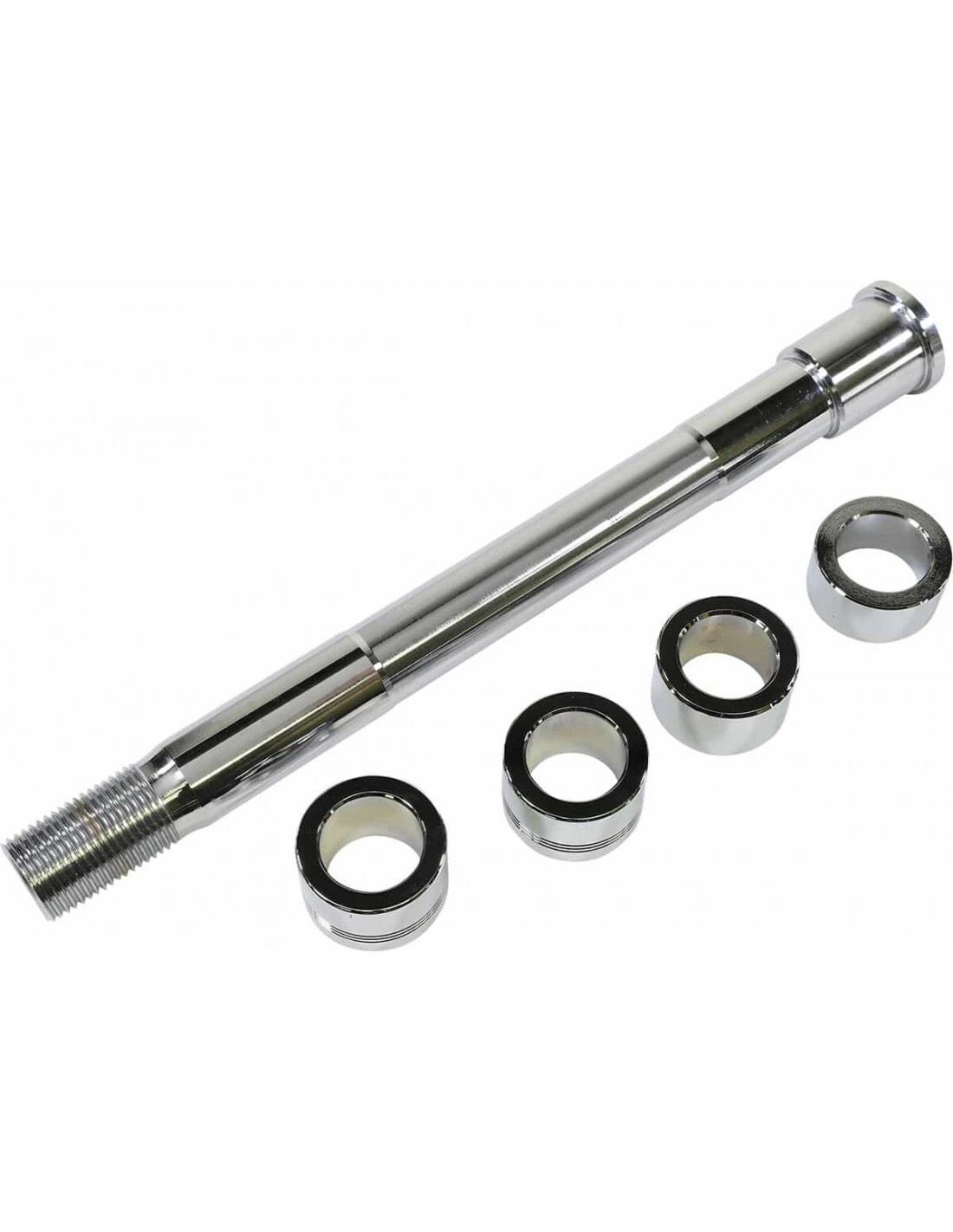 Drag SpecialtiesKit perno ruota anterioreUna brillante finitura cromata su perno ruota e minuteria abbellisce la moto I kit includono perno ruota, distanziali, dadi e rondelle < /br>