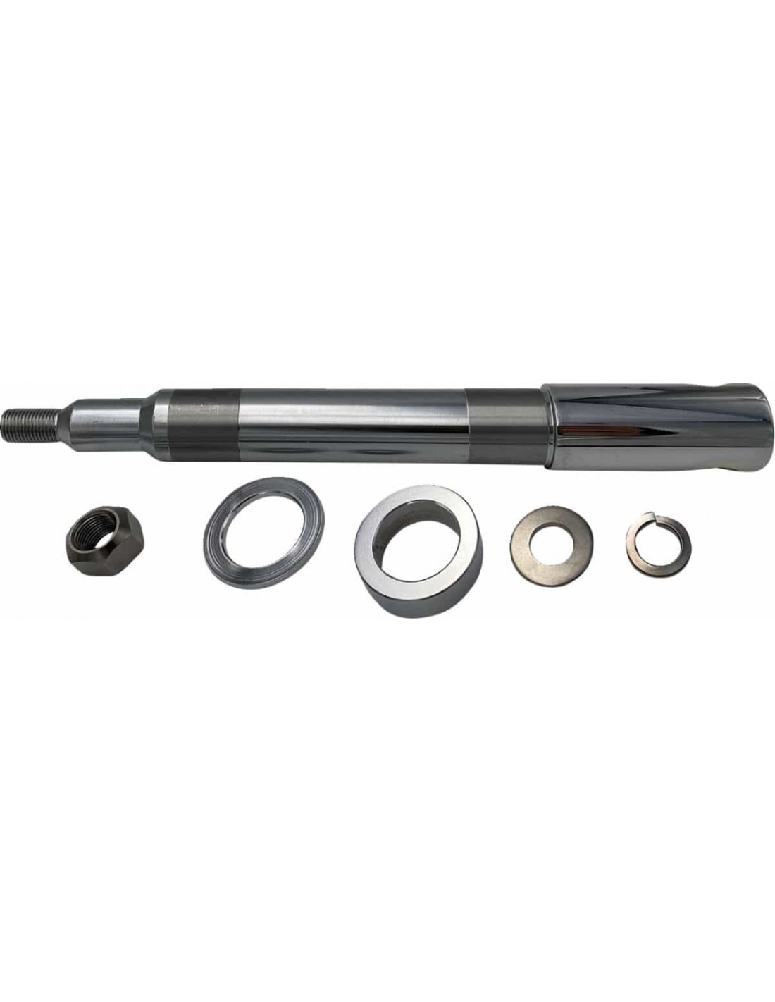 Drag SpecialtiesKit perno ruota anterioreUna brillante finitura cromata su perno ruota e minuteria abbellisce la moto I kit includono perno ruota, distanziali, dadi e rondelle < /br>