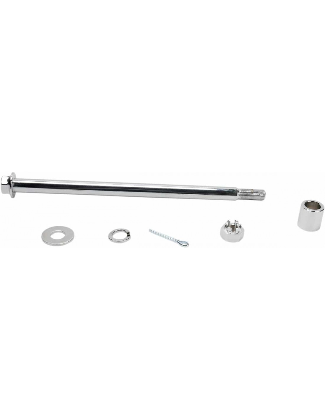 Drag SpecialtiesKit asse posterioreLa lunghezza dell'asse posteriore è misurata dall'interno della testa del bullone all'estremità delle filettature La finitura cromata brillante sull'asse e sulla bulloneria abbellisce la tua bici< /li> Il kit include asse, distanziali, dadi e rondelle Realizzato in acciaio al cromo I modelli con ABS richiedono un solo distanziale all'interno del kit.