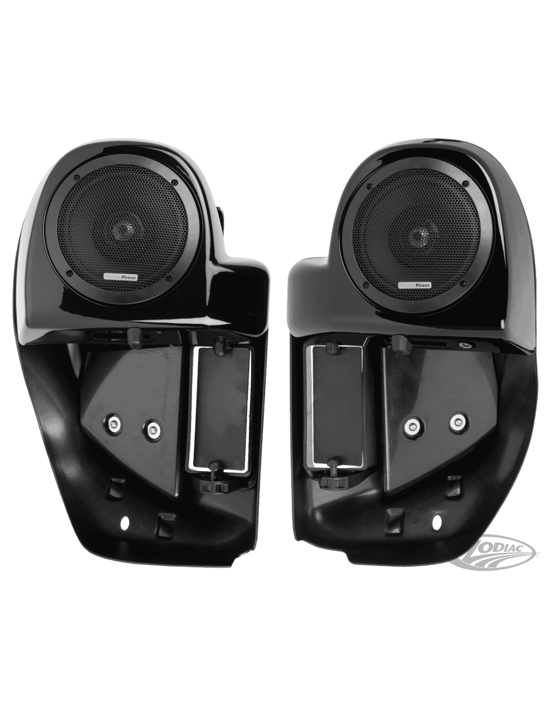 Precision Power - Motorcycle AudioLa soluzione di montaggio diretto di Precision Power per gli altoparlanti della natura inferiore è eccellente sulla tua moto Touring. Aggiungete i diffusori per ottenere una maggiore potenza audio e trasformate la vostra moto in una sala da concerto. La costruzione dell'alloggiamento utilizza plastica ABS industriale di alta qualità verniciata in nero vivo. Vengono forniti con altoparlanti impermeabili da 6 1/2" 4 Ohm 75 Watt RMS installati e includono spine a sgancio rapido impermeabile. Inoltre, sono dotati di un filtro per imedi, progettato e disegnato per ottenere il miglior suono per le carenature inferiori ventilate. Precablati per l'amplificatore digitale ZPN 770235 Atom, ma facilmente ricablabili per l'uso con altri amplificatori.