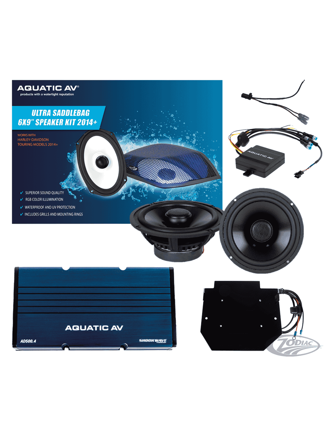 Aquatic AVQuesti altoparlanti impermeabili IP44 offrono un'impressionante potenza sonora e la possibilità di personalizzare sia i colori che le modalità di illuminazione. L'amplificatore a 4 canali offre anche 600 watt di potenza per chi cerca una qualità audio e un volume eccezionali. Gli altoparlanti della natura hanno una potenza totale di 2x 150W e 2x 75W RMS, mentre gli altoparlanti della sella hanno una potenza totale di 2x 150W e 2x 100W RMS. Le opzioni di personalizzazione del colore e della modalità di illuminazione sono controllate con l'applicazione gratuita Aquatic AV. I kit completi includono tutto il necessario per l'installazione, compresi i cablaggi per diffusori e amplificatori e una staffa per amplificatore. Si noti che la radio di fabbrica sui modelli dal 2014 a oggi richiede un flashing per riconfigurare le massime prestazioni dei dispositivi audio aggiuntivi.