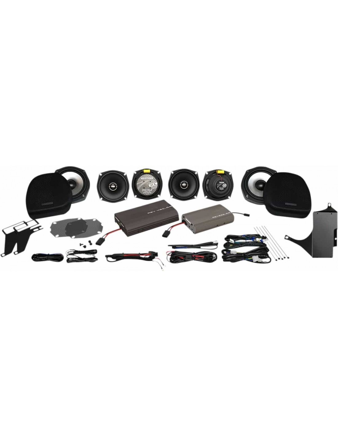 HogtunesImpianto audio completo con sei altoparlanti e due amplificatoriKit completo di 6 altoparlanti da 425 watt con due amplificatori Include un altoparlanti anteriori e posteriori della serie XL, oltre a un kit woofer 7” per il vano portaoggetti inferiore carenatura (ventilato) REV 450-AA 200 watt per alimentare gli altoparlanti anteriori e posteriori e amplificatore REV 225-AA 225 watt per woofer da 7” Tutti gli amplificatori possono essere montati nella carenatura interna e sono facilissimi da installare Progettato per essere compatibile con i sistemi di carica di serie, non è richiesto alcun aggiornamento Il il kit viene fornito completo di tutto il necessario per il cablaggio plug-and-play e il materiale per il montaggio necessario per completare l'installazione