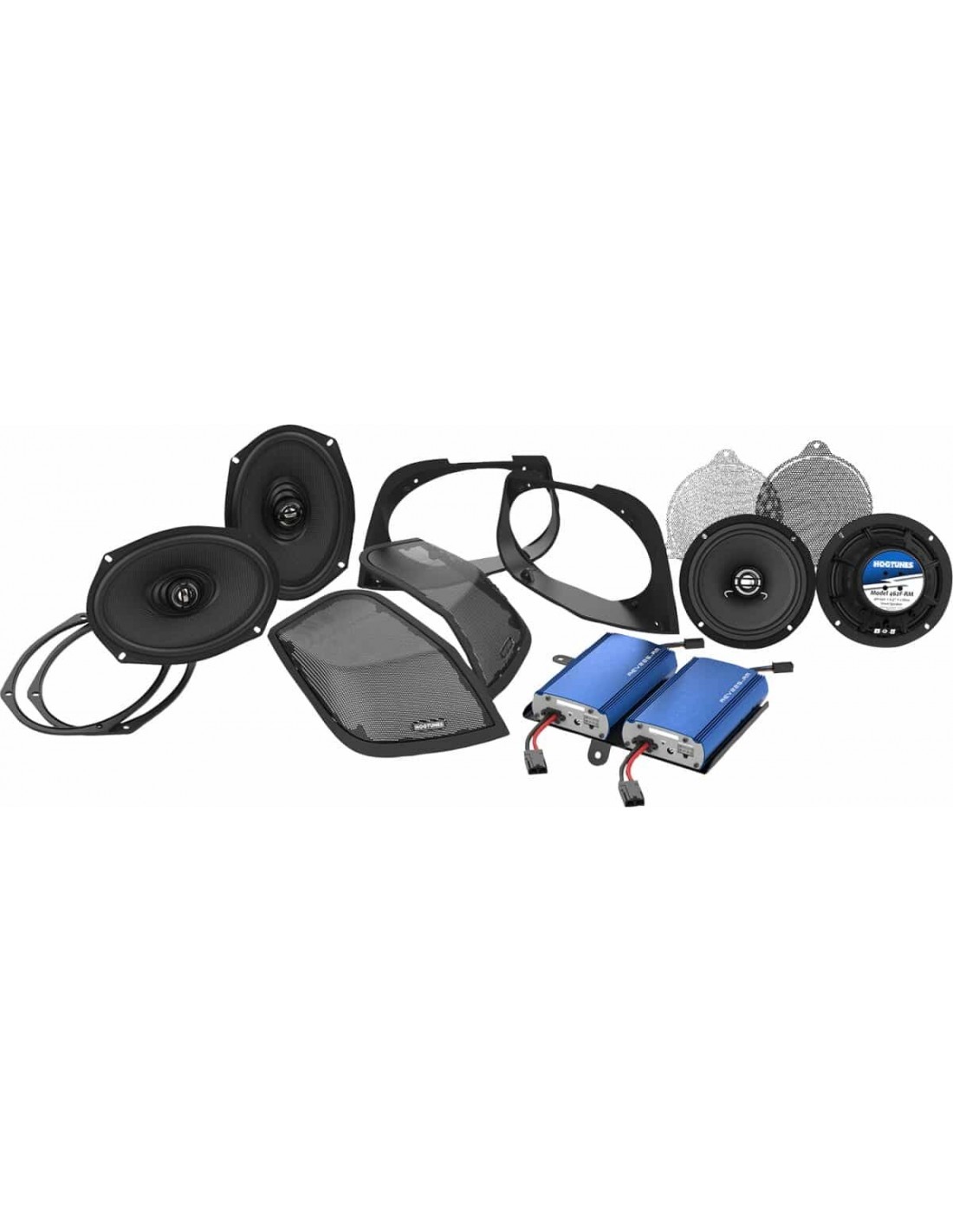 Kit coperchio tagliato con altoparlanti/amplificatoreInclude 4 altoparlanti, 2 amplificatori, adattatori e kit coperchio tagliato Entrambi gli amplificatori si fissano alla carenatura con le piastre di montaggio in dotazione li> Aggiunge altoparlanti per carenatura e altoparlanti da 6" x 9" ai coperchi delle borse laterali con 450 W di potenza Tutti i cavi e l'hardware plug and play necessari inclusi Non è previsto alcun reflash della radio richiesto, ma il fader funzionerà se viene eseguito nuovamente il flashing della radio. Il kit si adatta ai coperchi delle borse laterali di fabbrica.