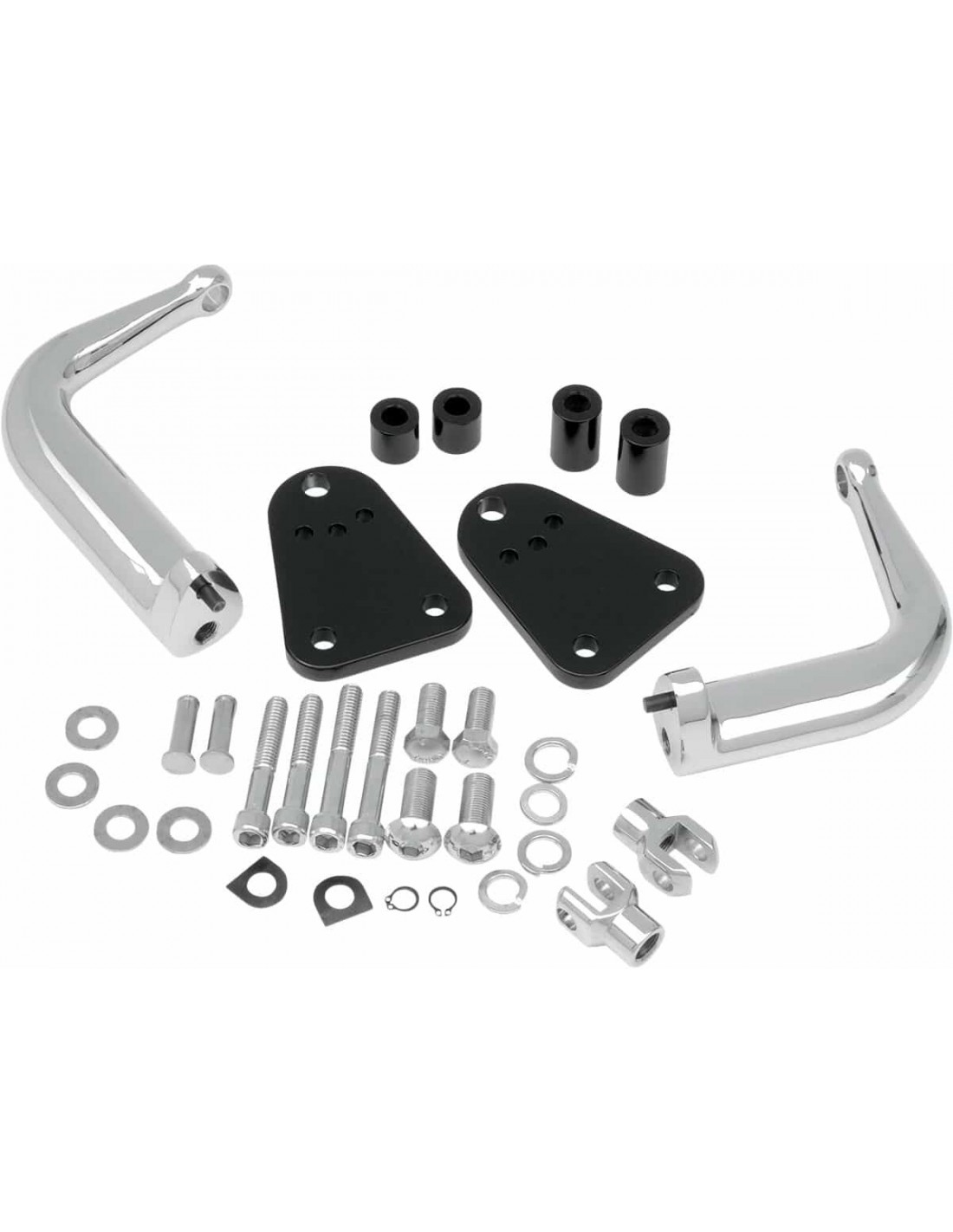 Attacco poggiapiedi regolabile HighwayCon staffe di montaggio con finitura nera e bracci poggiapiedi e snodi cromati I bracci per il montaggio dei poggiapiedi sono regolabili e possono essere montati in tre posizioni predefinite per l'adattamento all'altezza del pilota e alla posizione di guida preferita Poggiapiedi non inclusi, compatibile con la maggior parte dei poggiapiedi con attacco maschio Con tutto il materiale necessario per il montaggio incluso; il materiale per il montaggio visibile è cromato Non per Sportster '21-'22 S/RH1250S/RH975.