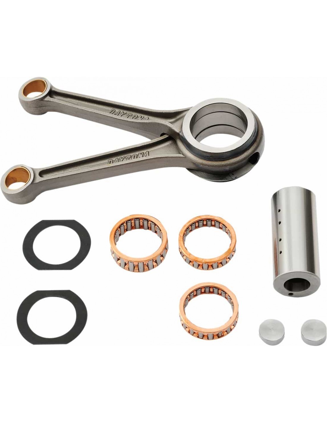 Set bielleSostituzioni per impieghi gravosi, perfetti per i motori di serie Soddisfa o supera le specifiche OEM Fornito completamente montato e pronto per l'installazione< /li> Il set completo include un perno di manovella a due fori, fermi in alluminio, cuscinetti, dadi e barre in acciaio forgiato trattato termicamente Controllare che la trave dell'asta e il volano abbiano un gioco corretto. br>
