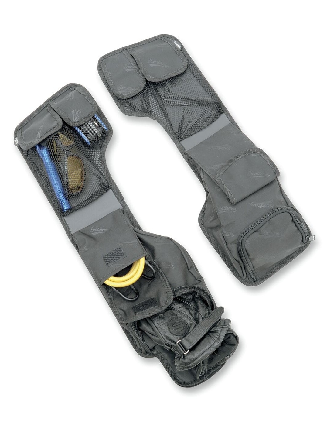 SaddlemenSet di organizer per coperchi valigie lateralipratici organizer dal profilo snello che si adattano perfettamente ai coperchi delle borse laterali rigide in stile fldorganizza al meglio l'attrezzatura necessaria per il tuo viaggio massimizzando lo spazio disponibile grazie alle diverse tipologie di tasche: chiuse ea rete semitrasparentil'attrezzatura trasportata, come la torcia o il manometro, viene mantenuta ferma e sempre facilmente accessibile grazie ai diversi nastri elastici è inclusa la borsa destra e sinistrasi installa facilmente sui coperchi delle borse laterali con le cinghie di fissaggio a strappo incluse nei punti di fissaggio di fabbrica l'installazione può essere completata nel giro di pochi minuti senza dover apportare alcuna modifica al sistema di valigie della tua motostruttura resistente a lunga durata con materiali in poliestere a 600 e 150 denaridimensioni: 20 x 6 5/8 x 1/2