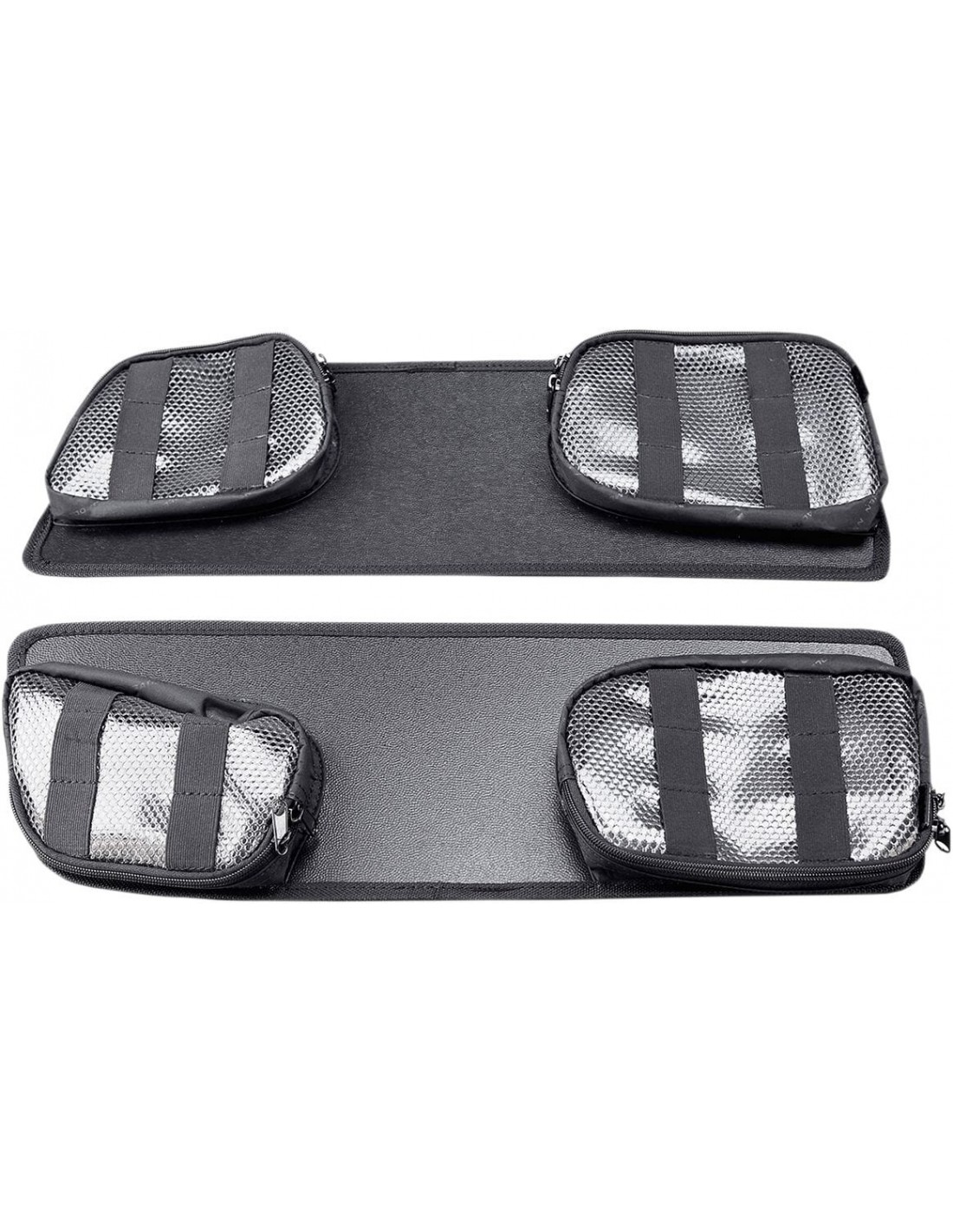 SaddlemenOrganizer per copertinele borse per coperchio forniscono molto spazio per riporre piccoli oggetti sotto il coperchio della borsa laterale2 tasche con cerniera con mezzelune elastiche ideali per fissare un lampeggiante , chiavi o altri oggetti similiquesti vengono inseriti tra il sistema di chiusura del coperchiofacile da installare