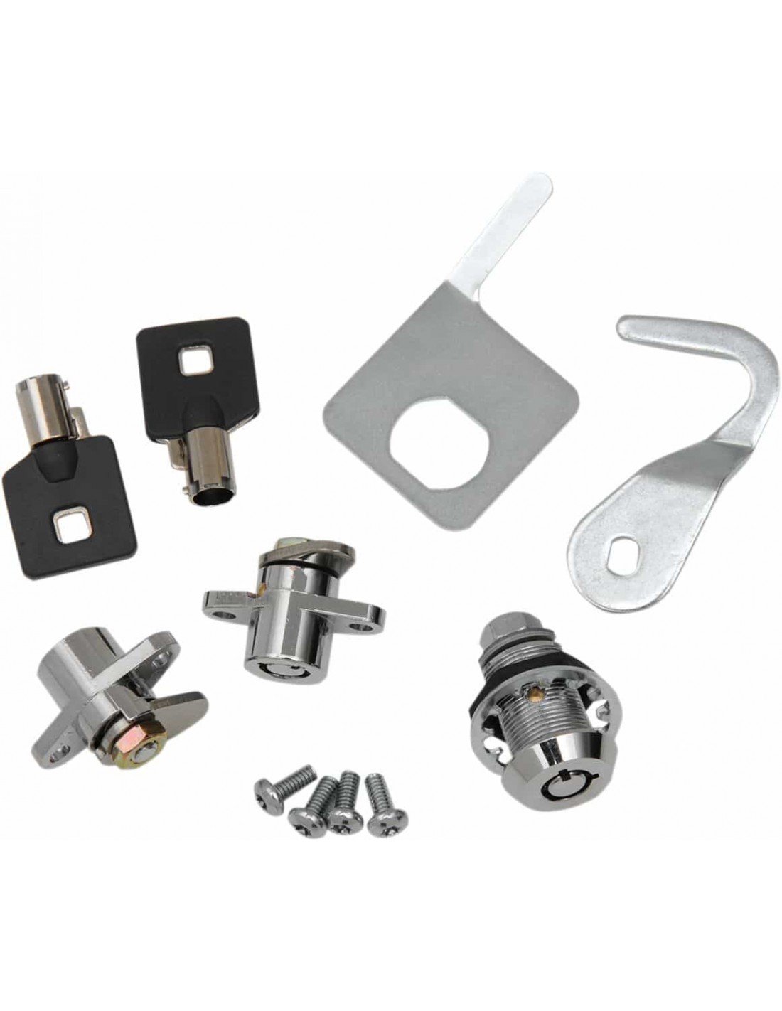 Kit di fissaggio per valigie laterali e Tour-Pak®Il kit include due serrature per borse laterali e una per coperchio bauletto Le serrature sono uguali, per cui basta una chiave soltanto che apre tutto Due chiavi uguali incluse