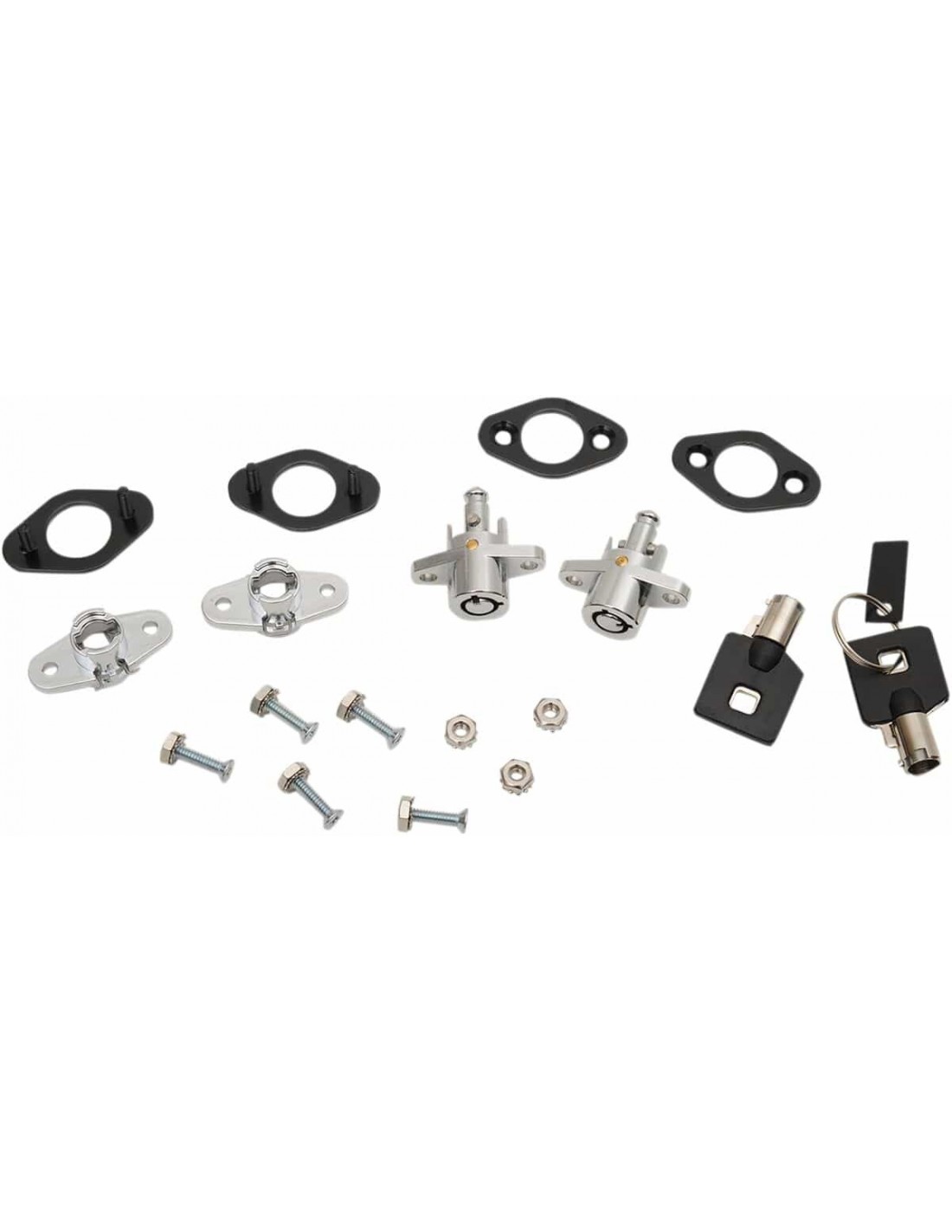 Drag SpecialtiesKit per fissaggio borse lateraliAdatto per la maggior parte di borse laterali in pelle morbida Il kit include due serrature, due chiavi e tutto il materiale necessario per il montaggio Due kit consigliati per borse laterali con doppia fascia elastica