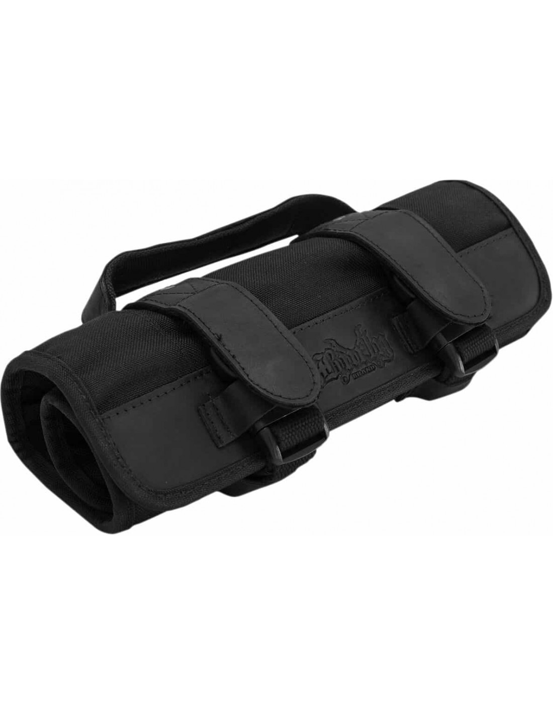 Burly BrandAstuccio attrezzi arrotolabileCinghie di fissaggio e maniglia in pelle, che offrono supporto e punti di montaggio sicuri Sistema a otto tasche in tre larghezze, per sistemare diversi tipi di utensile di varie dimensioni Tasca multiuso con cerniera per oggetti più piccoli Il sistema di montaggio a sgancio rapido regolabile funziona su manubri, sissybar o telaio laterale Montaggio universale.