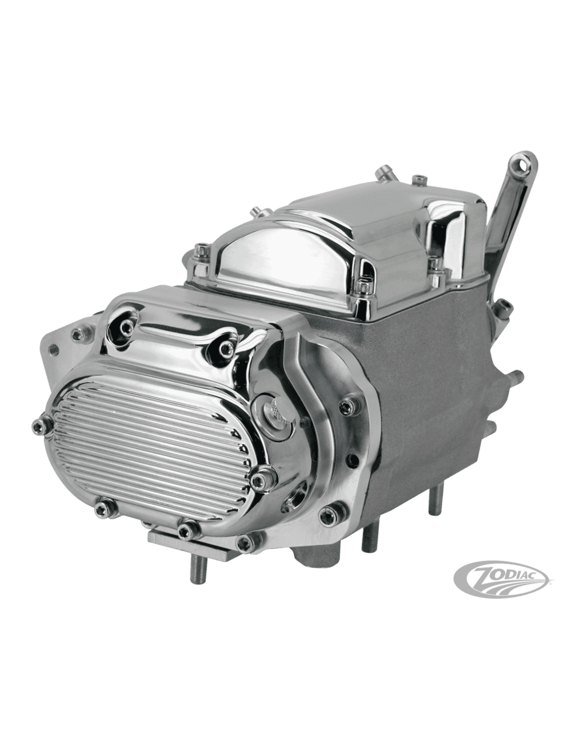 Kibblewhite Precision Machining Inc.Su richiesta prendiamo le casse cambio Jims 5-in-4 e le assembliamo con la vostra scelta di ingranaggi e alberi Andrews, Jims o Zodiac e le spediamo con una bottiglia di olio cambio Spectro. La prima marcia ha un rapporto di 3,24:1, la seconda marcia 2,21:1, la terza marcia 1,60:1, la quarta marcia 1,23:1 e la quinta marcia 1,00:1. La cassa cambio 5-in-4 è progettata per telai a 4 marce stile Big Twin 1970-1984 con cambio stile Shovelhead e trasmissione finale a catena. La cassa cambio è compatibile solo con trasmissione finale a catena, non con quella di serie HD a cinghia come usato su FXSB 1980-1983. Inoltre non è adatto ai Softail.