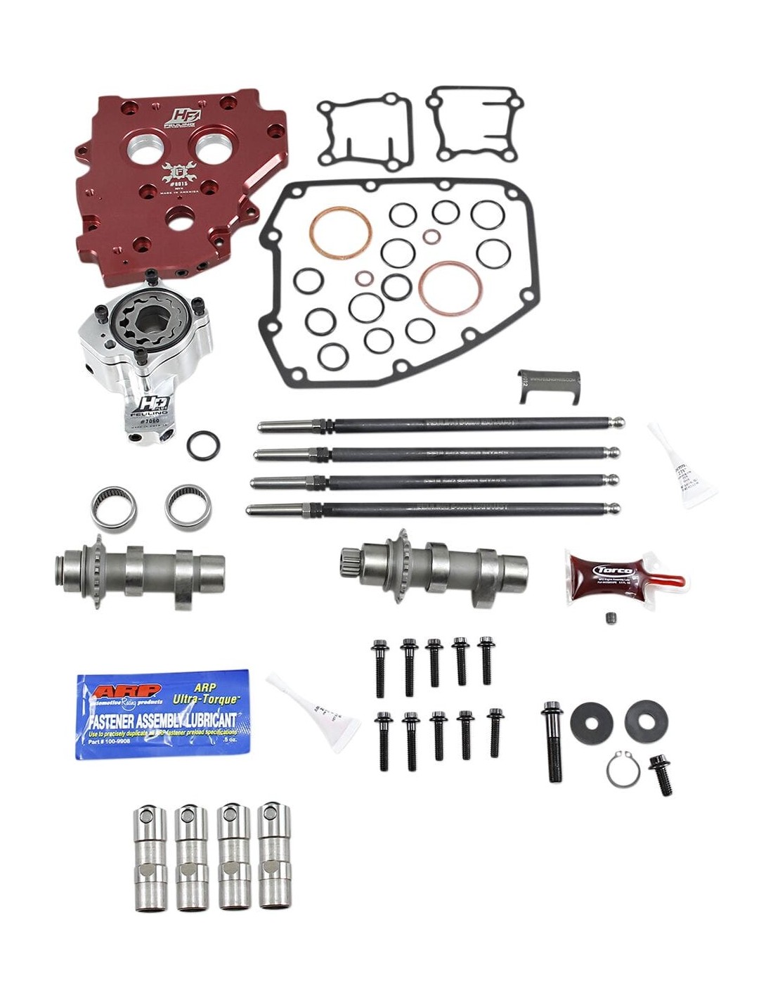 Feuling Oil Pump Corp.Kit carter camme hp+®tutto il necessario dal basso all'alto del carter cammeoffrono la massima affidabilità, longevità, prestazioni di picco e le temperature minime per olio e motore possibilifunzionamento del motore più silenzioso e fluidoaumenta la pressione dell'olio, il volume in ritorno e il flusso di olio motoretemperatura motore più fredde di 25-35 graditemperatura olio più fredde di 15-30 gradipressione olio maggiore di 15-30 psieliminano trasudazione di olio sul carter, trafilaggio e filtri aria oleatiil kit include pompa olio ad alto volume hp+® feuling®, piastra albero a camme in billet ad alto flusso, alberi a camme serie reaper®, punterie idrauliche a rullo hp+® , aste di spinta regolabili fast install®, cuscinetti timken®/koyo®, guarnizioni, o-ringper l'installazione di alberi a camme azionati a ingranaggi è necessario acquistare separatamente il kit s&s o andrews a 4 ingranaggi.