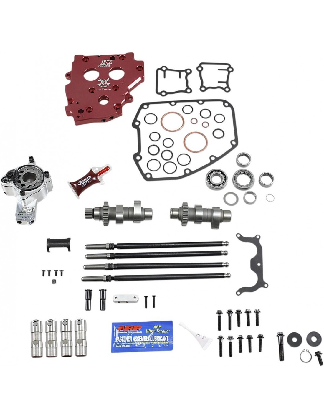 Feuling Oil Pump Corp.Kit carter camme hp+®tutto il necessario dal basso all'alto del carter cammeoffrono la massima affidabilità, longevità, prestazioni di picco e le temperature minime per olio e motore possibilifunzionamento del motore più silenzioso e fluidoaumenta la pressione dell'olio, il volume in ritorno e il flusso di olio motoretemperatura motore più fredde di 25-35 graditemperatura olio più fredde di 15-30 gradipressione olio maggiore di 15-30 psieliminano trasudazione di olio sul carter, trafilaggio e filtri aria oleatiil kit include pompa olio ad alto volume hp+® feuling®, piastra albero a camme in billet ad alto flusso, alberi a camme serie reaper®, punterie idrauliche a rullo hp+® , aste di spinta regolabili fast install®, cuscinetti timken®/koyo®, guarnizioni, o-ringper l'installazione di alberi a camme azionati a ingranaggi è necessario acquistare separatamente il kit s&s o andrews a 4 ingranaggi.