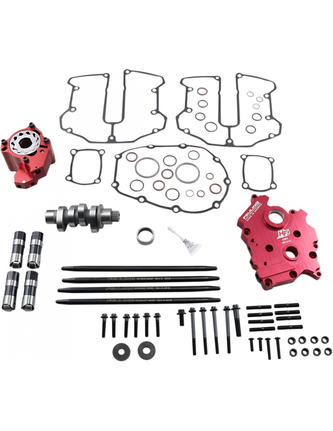 Feuling Oil Pump Corp.Kit carter camme 592 race series®il kit include un sistema di lubrificazione race series: pompa olio in billet 7075, punterie race series, piastra albero a camme in alluminio billet ad alto flussola pompa olio è il 50% più dura e resistente di quella di fabbrica e mantiene tolleranze più strette a temperaturale punterie idrauliche race series presentano una corsa complessiva di ben 0,200”, progettata con una portata di spurgo più lenta per gestire le pressioni della molla della valvola elevata, aumenta il giro del motore prima della valvola di galleggiamento e presenta un magnetefunzionamento del motore più silenzioso e fluidoaumenta la pressione dell'olio, il volume in ritorno e il flusso di olio motoretemperatura motore più fredde di 15°-25°temperatura olio più fredde di 15°-30° gradipressione olio maggiore di 10-30 psieliminano trasudazione di olio sul carter, trafilaggio e filtri aria oleatile aste di spinta resistenti con parete 165” ridurre le armoniche della distribuzione e aumentano l'alzata valvolasi consiglia vivamente un filtro aria ad alto flusso e un collettore di scarico a tre incrementisono necessarie molle valvola ad alto carico ad alzata maggioratagamma regimi 2850-6250