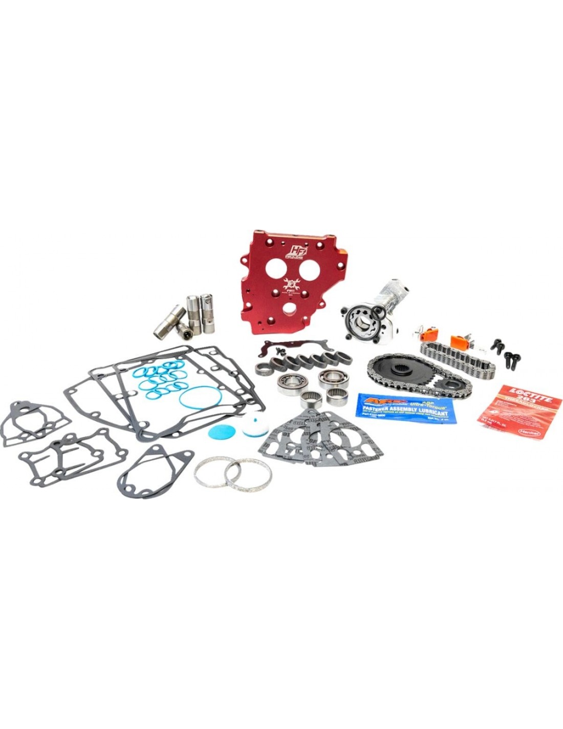 Feuling Oil Pump Corp.Kit di conversione tendicatena idraulico hp+il kit include i componenti necessari per aggiornare i sistemi di trasmissione della catena di distribuzione con tendicatena meccanico a molla stile '99-'06 alla catena di distribuzione idraulica di fine '07-'17 sistema di trasmissione include una pompa dell'olio ricavata dal pieno della serie feuling race, piastra a portata elevata, sollevatori a corsa completa della serie race, alloggiamenti tenditori idraulici ricavati dal pieno di feuling, cuscinetti tenditori, catene di distribuzione, ruote dentate, distanziali di allineamento ruote dentate, timken®/ cuscinetti feuling, guarnizioni necessarie, o-ring, camma arp®, bulloneria della pedivella, loctite® e lubrificante al molibdeno prodotto negli stati uniti kit guarnizioni scatola bilancieri incluso quindi quello di fabbrica- le aste di comando possono essere riutilizzate. per motori twin cam delphi '01-'06 dotati di sistema di accensione senza sensore camma con alberi a camme di trasmissione a catena scanalati stile di fabbrica '00-'06. Non funziona su alberi a camme con chiavetta.