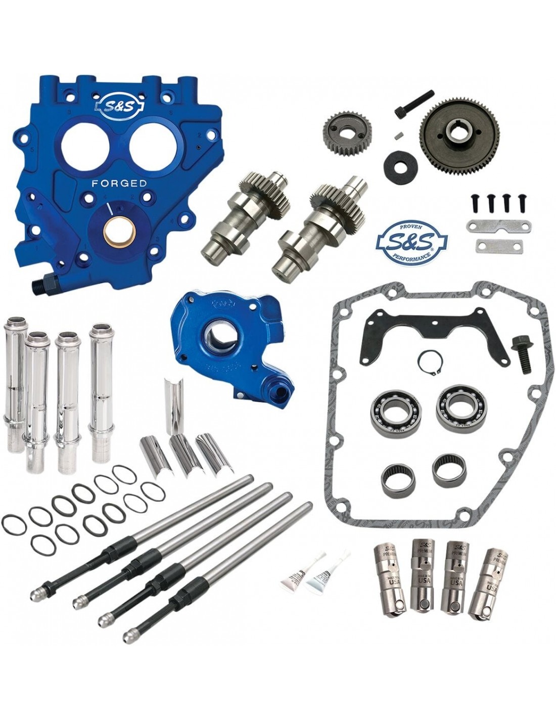 Kit carter cammepassa all'albero a camme ad alte prestazioni con installazione rapida di s&smigliora le prestazioni del motore, alzata maggiore e fasatura distribuzione ottimizzataaste di spinta s&s quickee – installazione facile, senza dover rimuovere il coperchio bilancieriper sostituire la pompa olio, la piastra di supporto camme, le camme, i tendicatena e le punterie di serie con i nuovissimi componenti di altissima qualità realizzati negli stati da s&si kit distribuzione ingranaggi offrono tranquillità: basta preoccupazioni per guasti alla catena di distribuzionemade in usaper twin cam '99-'06, escluso dyna '06.