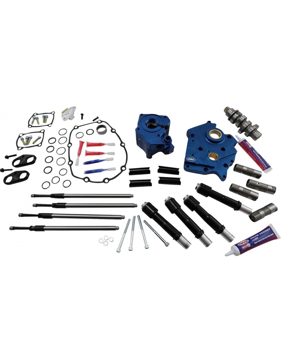 Kit carter camme per motori m-eightle spine passanti possono essere rimosse a fini di manutenzione sezioni di ritorno indipendenti per l'alloggiamento per volano e il carter camme protezione da detriti in entrambe le cavità di passaggio olio capacità di flusso aumentata in mandata e in ritorno la valvola di depressurizzazione regolabile può essere regolata con l 'unità installata nel motore lavorazione di precisione in alluminio billet punterie di altissima qualità s&s il magnete nel carter camme impedisce l'ingresso di detriti nella pompa olio consentono di aumentare la stabilità delle punterie in condizioni di alzata maggiorata e alti regimi include tutte le guarnizioni, i cuscinetti e il materiale per il montaggio necessari l'installazione made in the usa 465 è una camma di coppia ideale per applicazioni touring.