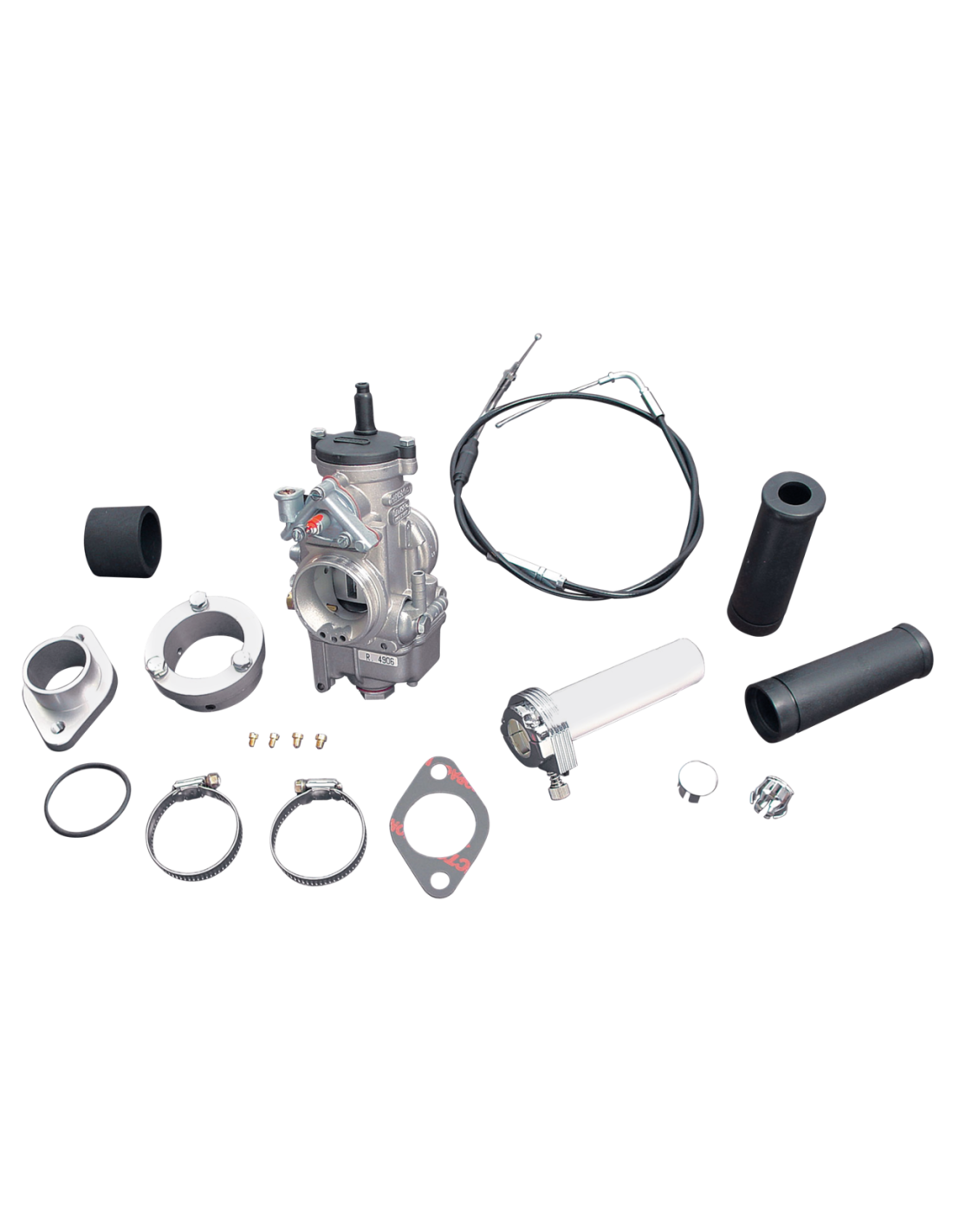 Il kit carburatore Dell'Orto da 40mm comprende gruppo farfalla, cavo, manopole, adattatore per filtro aria tipo Bendix E Keihin butterfly, e adattatore collettore-carburatore. Il carburatore Dell'Orto è dotato di pompa dell'acceleratore e starter regolabili.