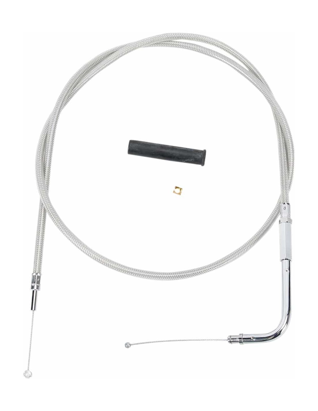 Cavo gas andato intrecciato in acciaio inossidabileI cavi sono dotati di raccordi cromati lucidati, guaina esterna in treccia di acciaio inossidabile, guaina interna in acciaio temperato e fodera interna in nylon per un funzionamento regolare e una lunga durata I cavi intrecciati presentano alloggiamenti esterni rivestiti in una copertura trasparente anti-ingiallimento, resistente all'abrasione La lunghezza indicata quella del solo alloggiamento esterno, gomito escluso. li> I cavi si adattano anche ai modelli più recenti di carburatori Mikuni.