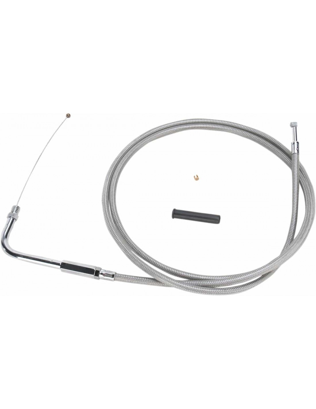 Cavo gas andato intrecciato in acciaio inossidabileI cavi sono dotati di raccordi cromati lucidati, guaina esterna in treccia di acciaio inossidabile, guaina interna in acciaio temperato e fodera interna in nylon per un funzionamento regolare e una lunga durata I cavi intrecciati presentano alloggiamenti esterni rivestiti in una copertura trasparente anti-ingiallimento, resistente all'abrasione La lunghezza indicata quella del solo alloggiamento esterno, gomito escluso. li> I cavi si adattano anche ai modelli più recenti di carburatori Mikuni.