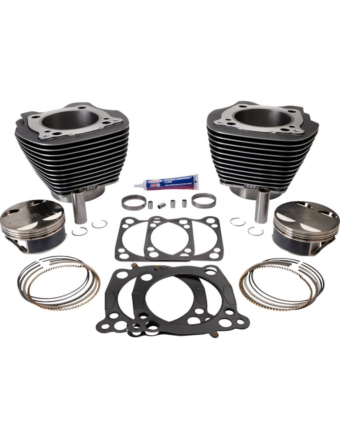 S&S CycleKit cilindro big boreil kit big bore consente di ottenere risultati eccellenti con testi cilindro di serie installazione facile: non c'è bisogno di praticare fori o dividere i carter esistenti, basta scambiare i cilindri i cilindri sono realizzati con alluminio di qualità e con rivestimenti interni in ghisa i kit includono cilindri, pistoni, segmenti e guarnizioni (testa, base e scarico) made in usa questo progetto richiede l'intervento di un tecnico esperto. All'addetto all'assemblaggio delle parti spetta controllare tutte le tolleranze e le specifiche di assemblaggio. non consigliato per i modelli trike