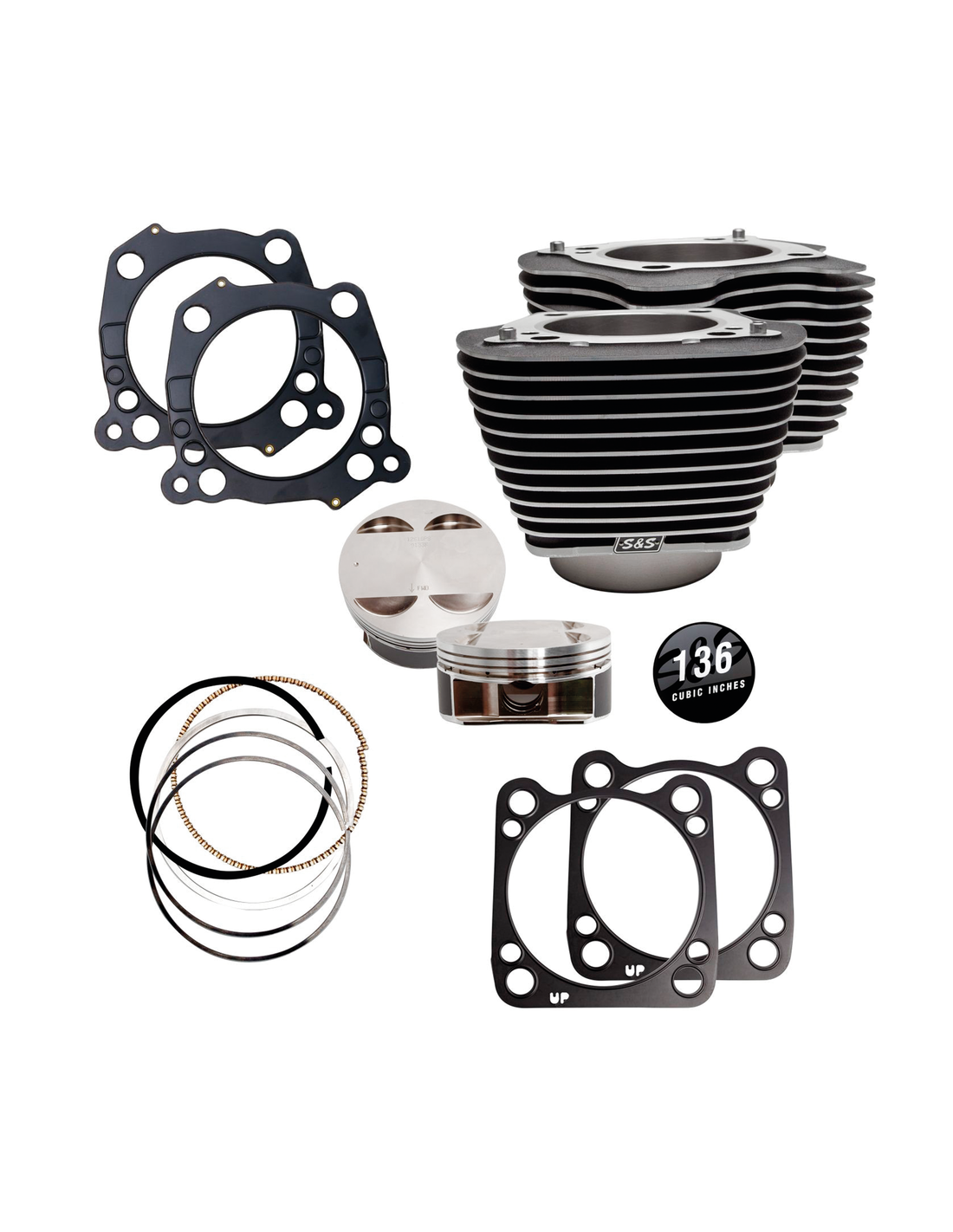 Questi kit di cilindri e pistoni Big Bore, in combinazione con l'albero motore S&S da 4,5/8", aumentano la cilindrata del vostro motore M8 fino a una massiccio 131CI (2151CC) per i kit da 4,250" o 136CI (2229CC) per i kit con alesaggio da 4,320". Un enorme aumento di cilindrata significa un enorme aumento di potenza. I kit di cilindri e l'albero a camme funzionano con i carter di serie e mantengono l'altezza del motore di serie. La finitura a polvere si abbina perfettamente alla finitura del motore OEM. Il kit di cilindri comprende due cilindri, due pistoni, due spinotti, quattro clips, due set di fasce e guarnizioni della testa, della base e della porta di scarico. È incluso anche un esclusivo distintivo S&S 131CI o 136CI per il coperchio della camma. L'albero motore con corsa di 4,5/8" deve essere ordinato separatamente per tutte le applicazioni inclusi i 121CI VVT perchè le bielle di serie hanno la lunghezza sbagliata per questi kit. I pistoni funzionano sia con le estremità degli spinotti conici di tipo OEM sia con le estremità degli spinotti dei pistoni a larghezza piena High Performance. Poiché i bulloni della testa del cilindro di serie sono monouso, sono necessari anche otto bulloni della testa di serie o un set di bulloni della testa S&S High Performance riutilizzabili. Per tutti Touring & Trike dal 2017 a oggi e tutti Softail dal 2018 a oggi.