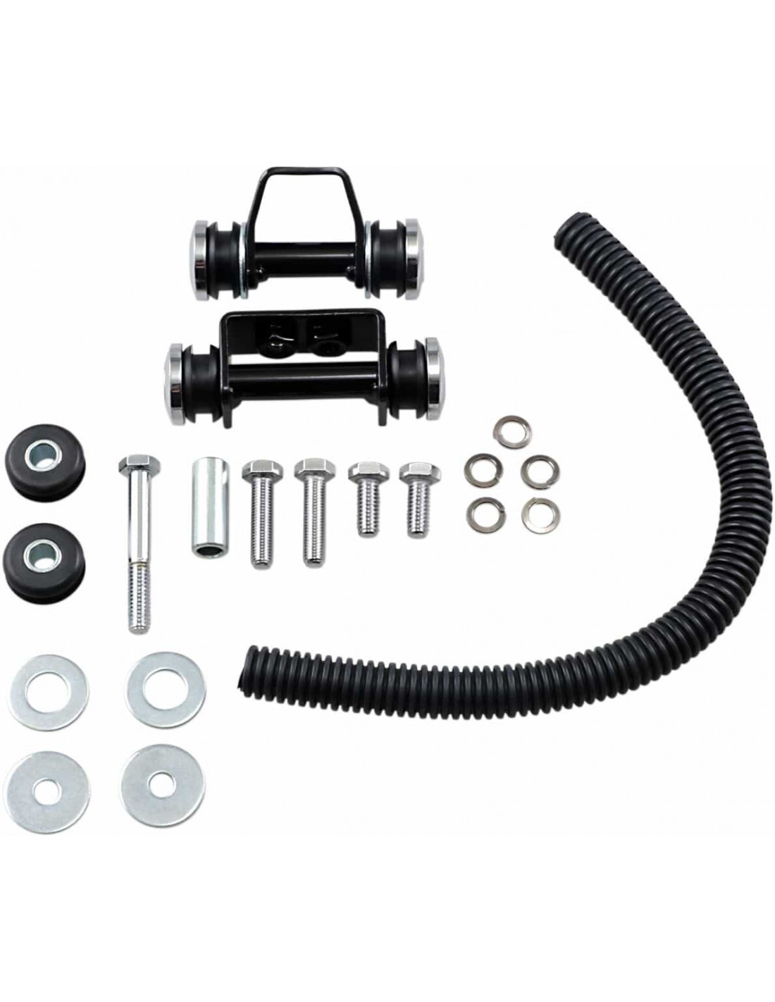 Drag SpecialtiesKit di montaggio personalizzato per serbatoi FlatsideIl kit include staffe di montaggio, attacchi in gomma, protezione tubo, rondelle coniche cromate e viti di montaggio Può essere utilizzato per aggiornare il materiale di montaggio di serie o per nuove costruzioni