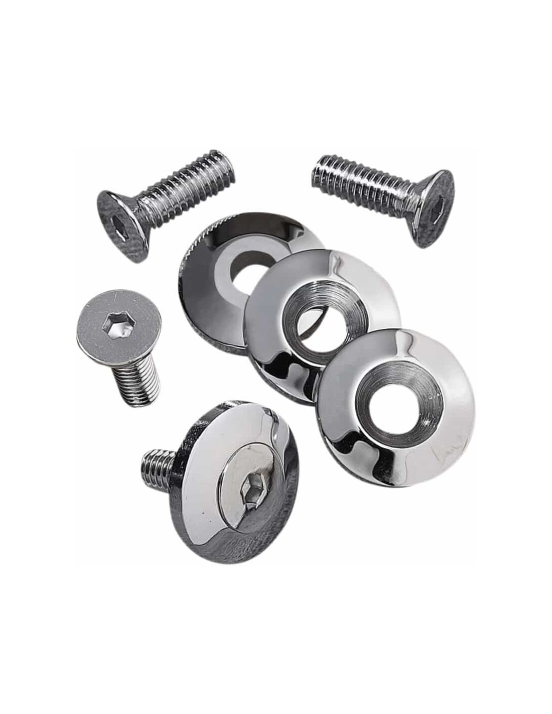 Drag SpecialtiesKit viti custom per serbatoi FlatsideLa minuteria cromata sostituisce le viti di montaggio frontali per serbatoio carburante OEM Include quattro viti Allen a testa piatta 5/16" -18 x 3/4" con rondelle da incasso