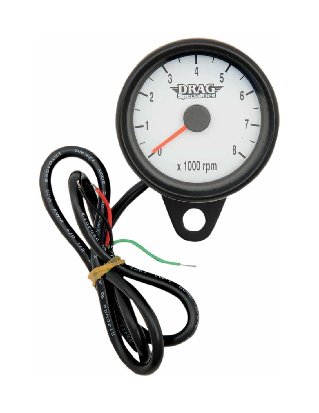 Drag SpecialtiesContagiri elettronico mini da 2,4"Funzionamento fluido, 12 V, 8000 giri/min Alloggiamento impermeabile in acciaio inox Retroilluminazione con LED di lunga durata Tachimetro abbinato cod. solo modelli precedenti al '04).