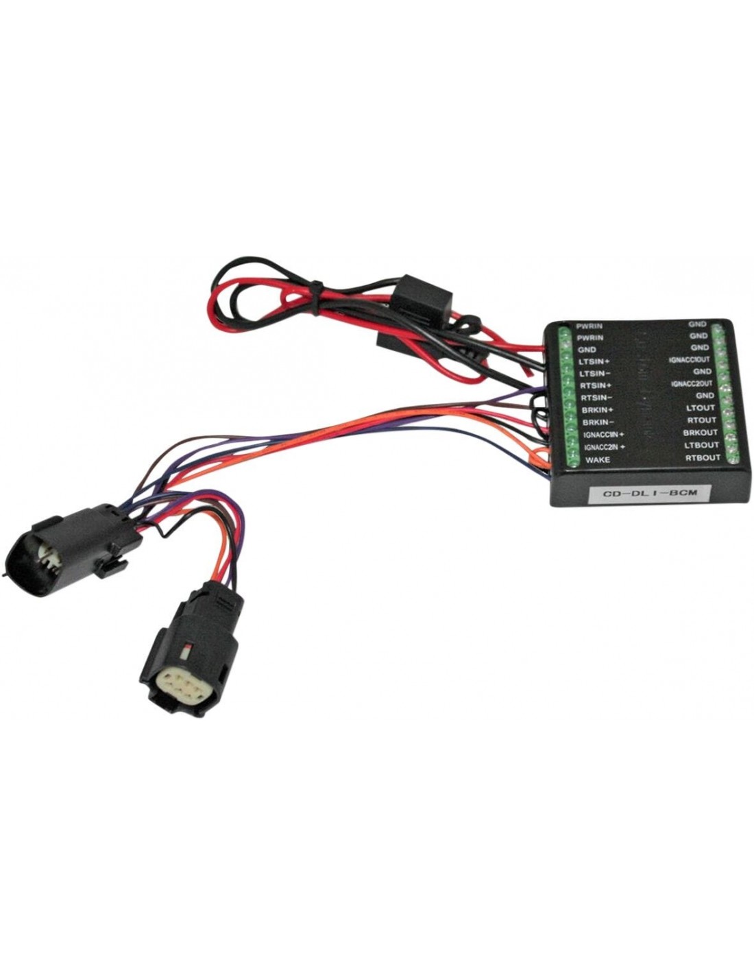 Modulo di isolamento del carico dinamicoti consente di collegare comodamente tutti gli accessori elettrici e le luci aftermarket isola completamente gli accessori dal cablaggio principale del veicolo senza aggiungere alcun carico aggiuntivo al sistema un must per tutte le bcm/vcm/can nuove con sistemi elettrici molto sensibili, che non tollerano bene l'aggiunta di componenti elettrici o accessori di illuminazione è dotato di una funzione che integra luce freno e indicatore di direzione in un unico cavo, dando la precedenza all'indicatore sulla luce freno, la quale risulta molto utile se si vuole far funzionare un led a tre fili (bassa densità, alta densità e messa a terra) come luce di posizione/freno/indicatore di direzione c'è anche un trailer out integrato che può essere collegato a cavi per rimorchio a 4 poli o (venduti separatamente), per essere sicuri che il connettore rimorchio sia isolato al 100% dal veicolo isolamento completo di tutte le luci e gli accessori elettrici dal veicolo indicatore di direzione destro/sinistro, luce freno, ingressi corrente per accessori li> uscite isolata per: indicatore di direzione destro/sinistro, luce freno, luce di posizione/accessori uscite isolata integrata per: indicatore di direzione/luce freno plug e giocare (tranne che nella versione universale) capacità max. Di 45 amp adattatore canbus aggiuntivo (cod. Art. Drag specialties: 2050-0166) richiesto quando gli indicatori di direzione posteriori di serie vengono rimossi durante le operazioni di elaborazione e personalizzazione della moto (un adattatore per ciascun indicatore)