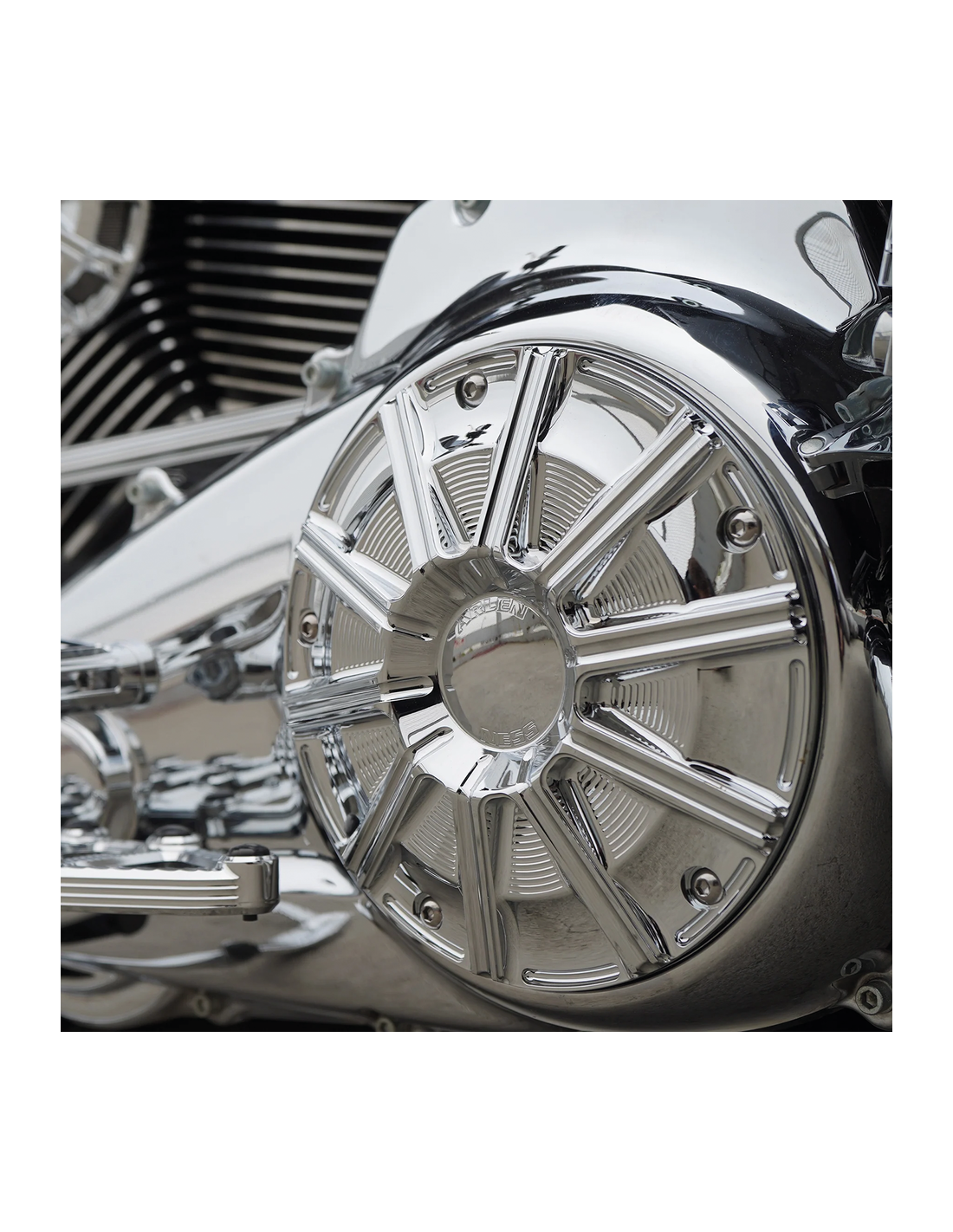 Per Dyna 1999-2017, Softail 2000-2018, Trike 2009-2015, Touring 1999-2014 e Touring 2015 (escluso 2015 FLTCUL e FLHTKL "Low"), Copertura frizione 10-Gauge, cromata