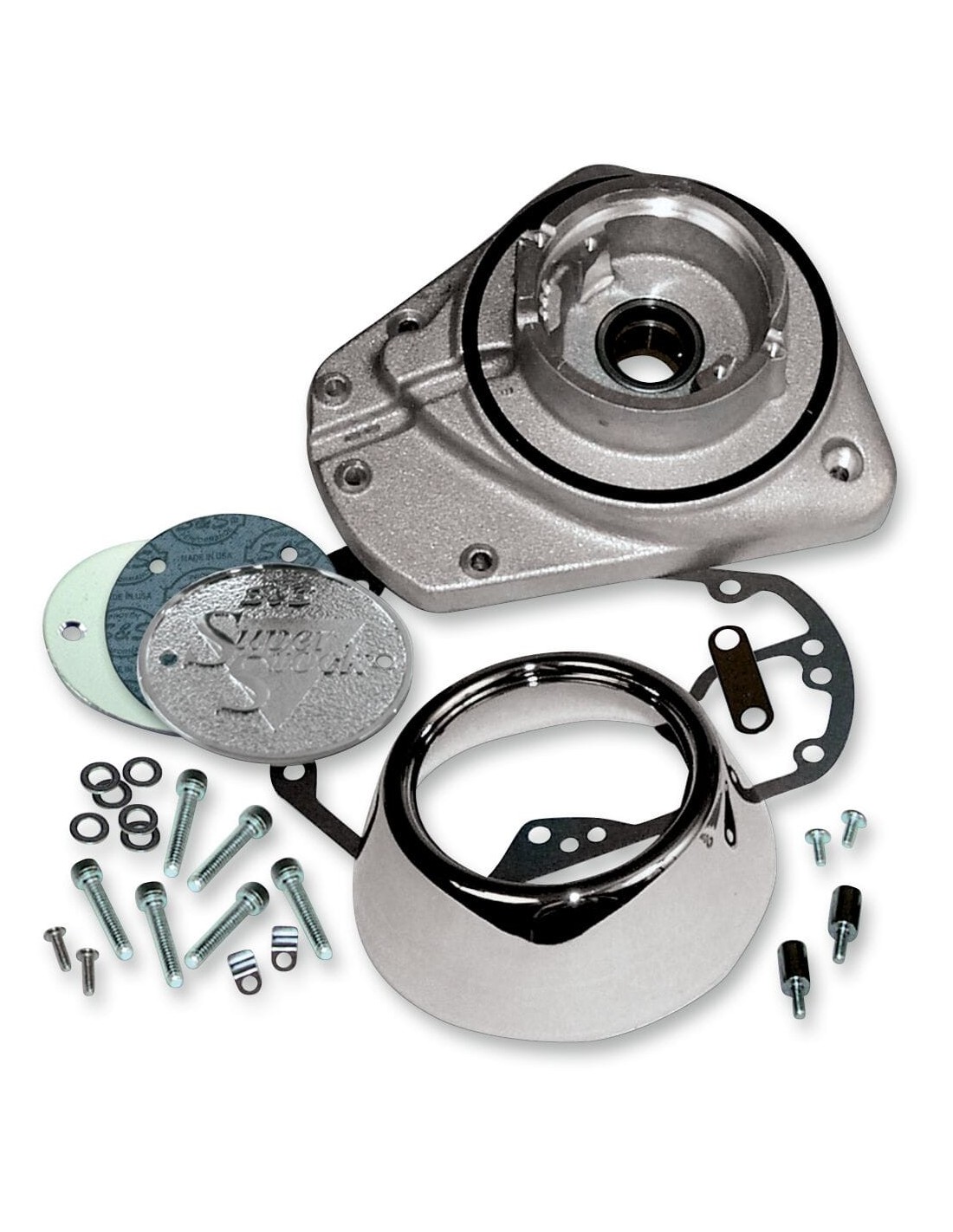 S&S CycleKit coperchio albero a cammelavorazione in resistente alluminio 356-t6, lo stesso materiale utilizzato per il carter motore s&s con copertura interna in alluminio pressofuso e coperchio esterno decorativo da avvitare passaggio aria interno incluso per ventilare il carter motore compatibili con sistemi di accensione a puntine o elettronici made in usa