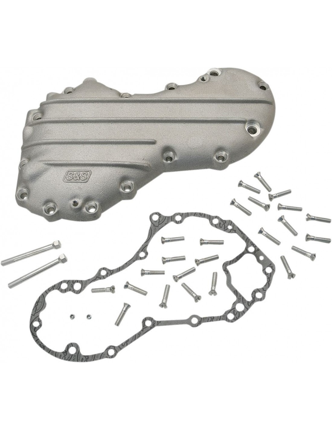 S&S CycleCoperchio ingranaggio generatorecompatibili con la maggior parte di motori di generatori; stile ispirato ai modelli oem in basso struttura pressofusa con finitura naturale guarnizione e materiale per il montaggio inclusi made in usa br>quattro nervature senza passaggio oliatore, cinque fori di montaggio da 1/16" e boccola pignone id da 9/16".