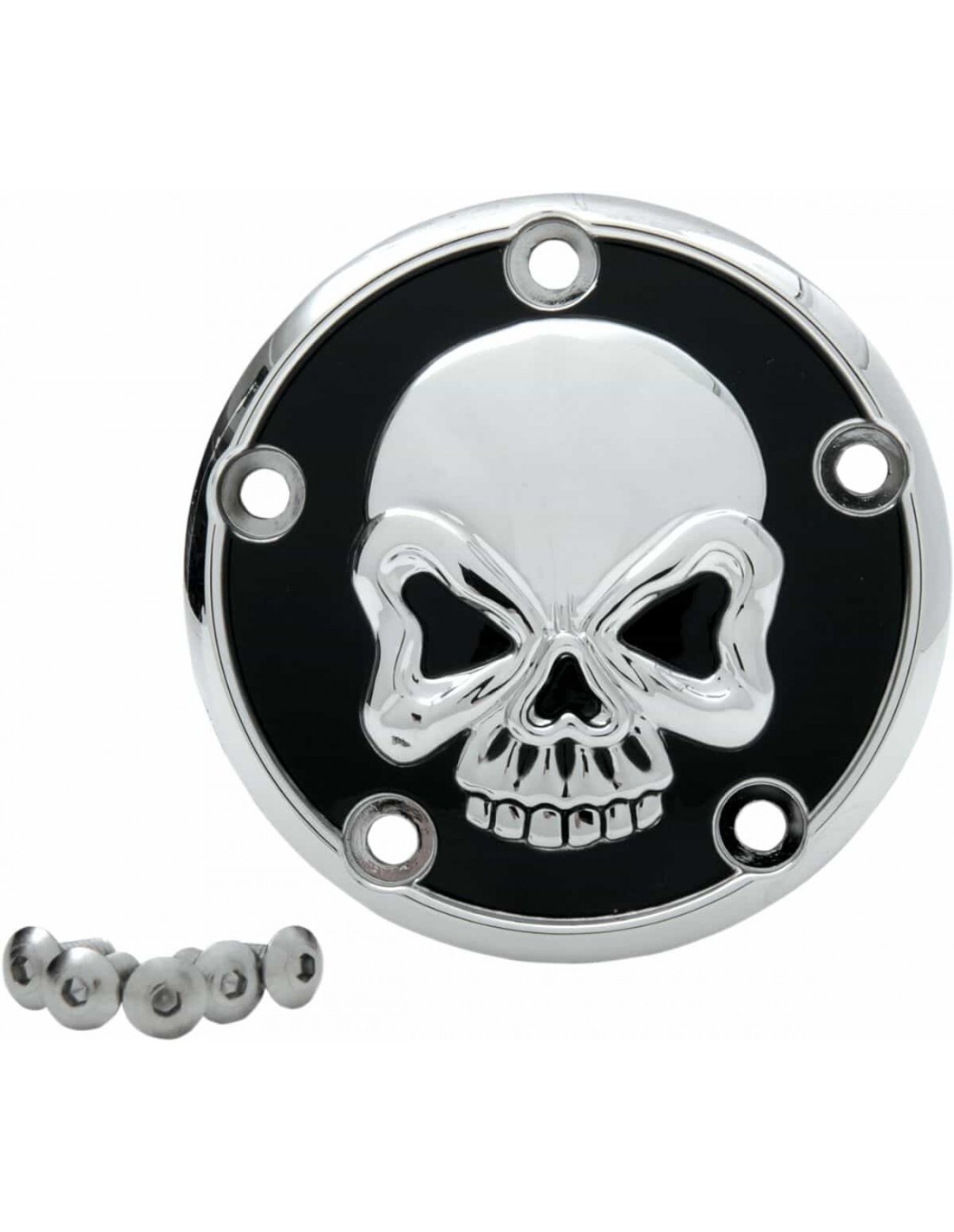 Cover punterie teschioIn alluminio pressofuso Finitura cromata con sfondo nero molto lucido