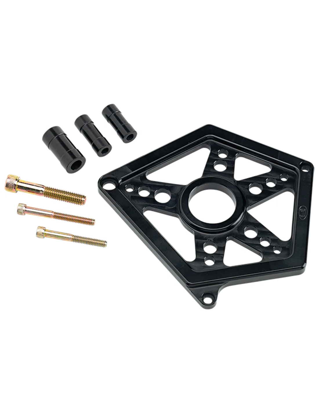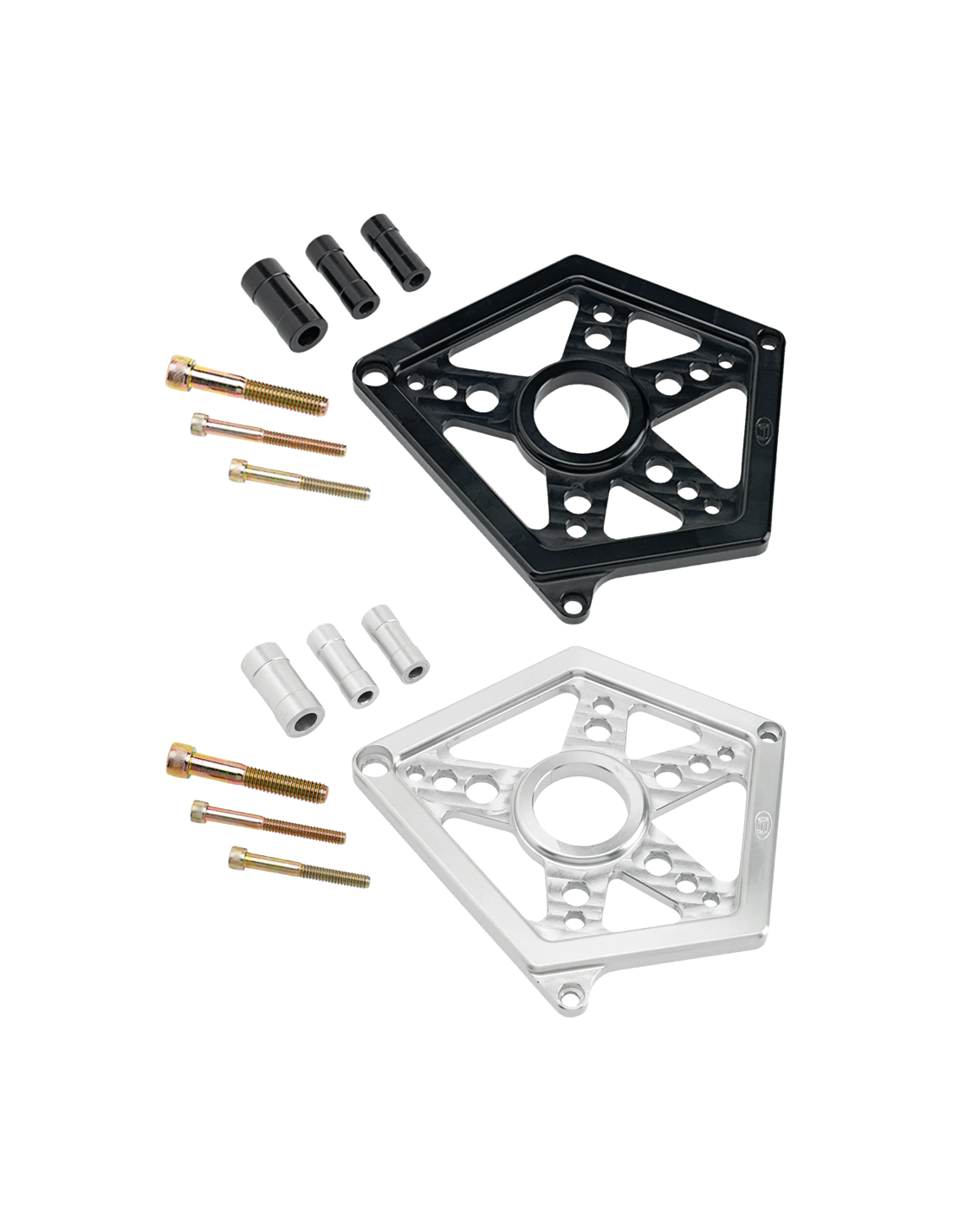 I coperchi in alluminio billet lavorati al CNC in stile aperto sono molto più leggeri dei pesanti pezzi fusi e sono completi di viti. Prodotto negli USA da Joker Machine.