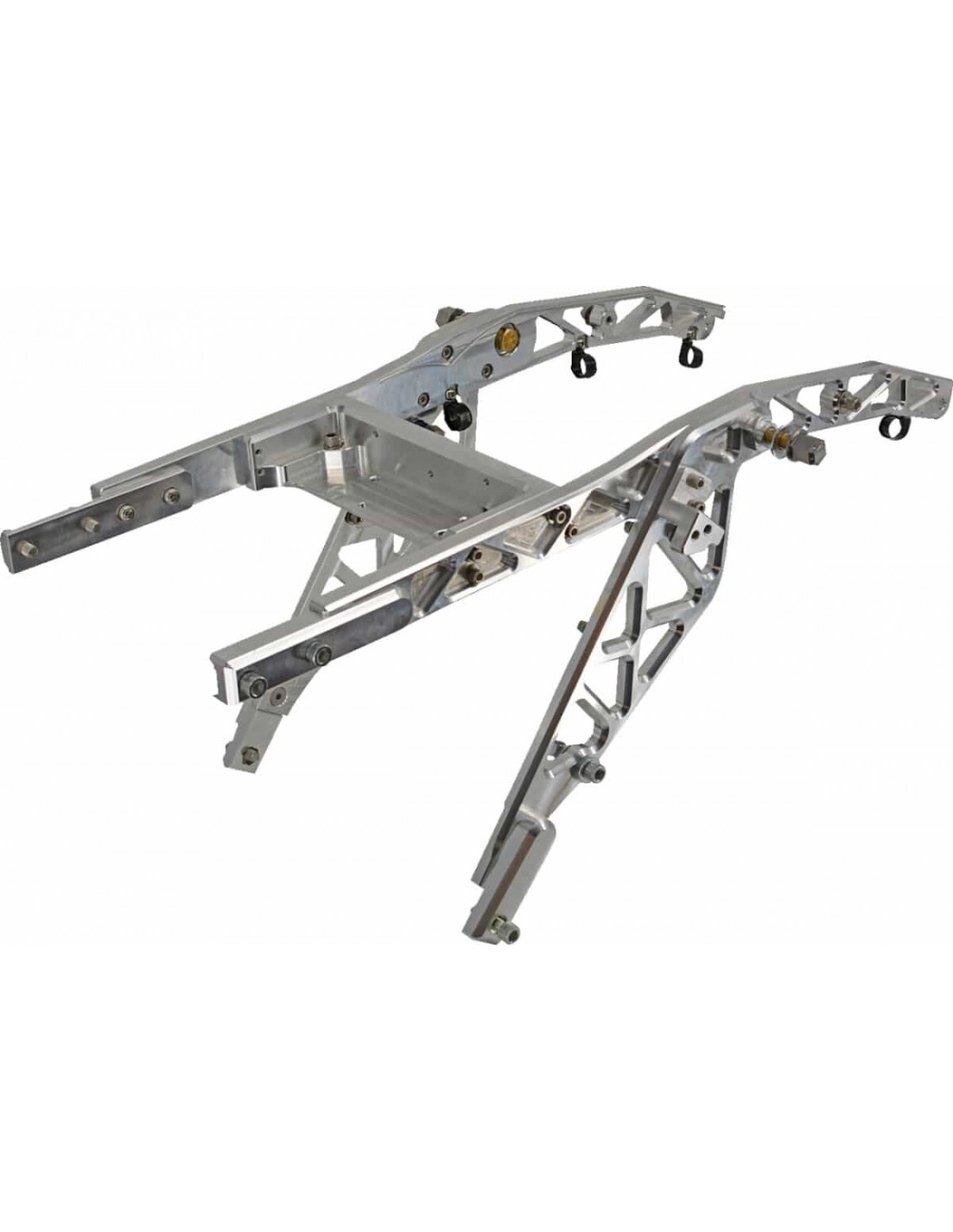 Sezione coda telaio posteriore ricavata dal pieno Design ispirato alle gare Risparmia oltre 8 libbre dallo stock Sostituzione diretta per applicazioni di serie Utilizzato su Trask Assault Glides Un must per i veri bagger ad alte prestazioni Include coperture laterali in fibra di carbonio stile FXR Viene fornito grezzo e non assemblato per consentire all'acquirente al rivestimento personalizzato Hardware incluso Sella non inclusa Prodotto negli USA Richiede l'installazione delle borse laterali montaggio personalizzato.