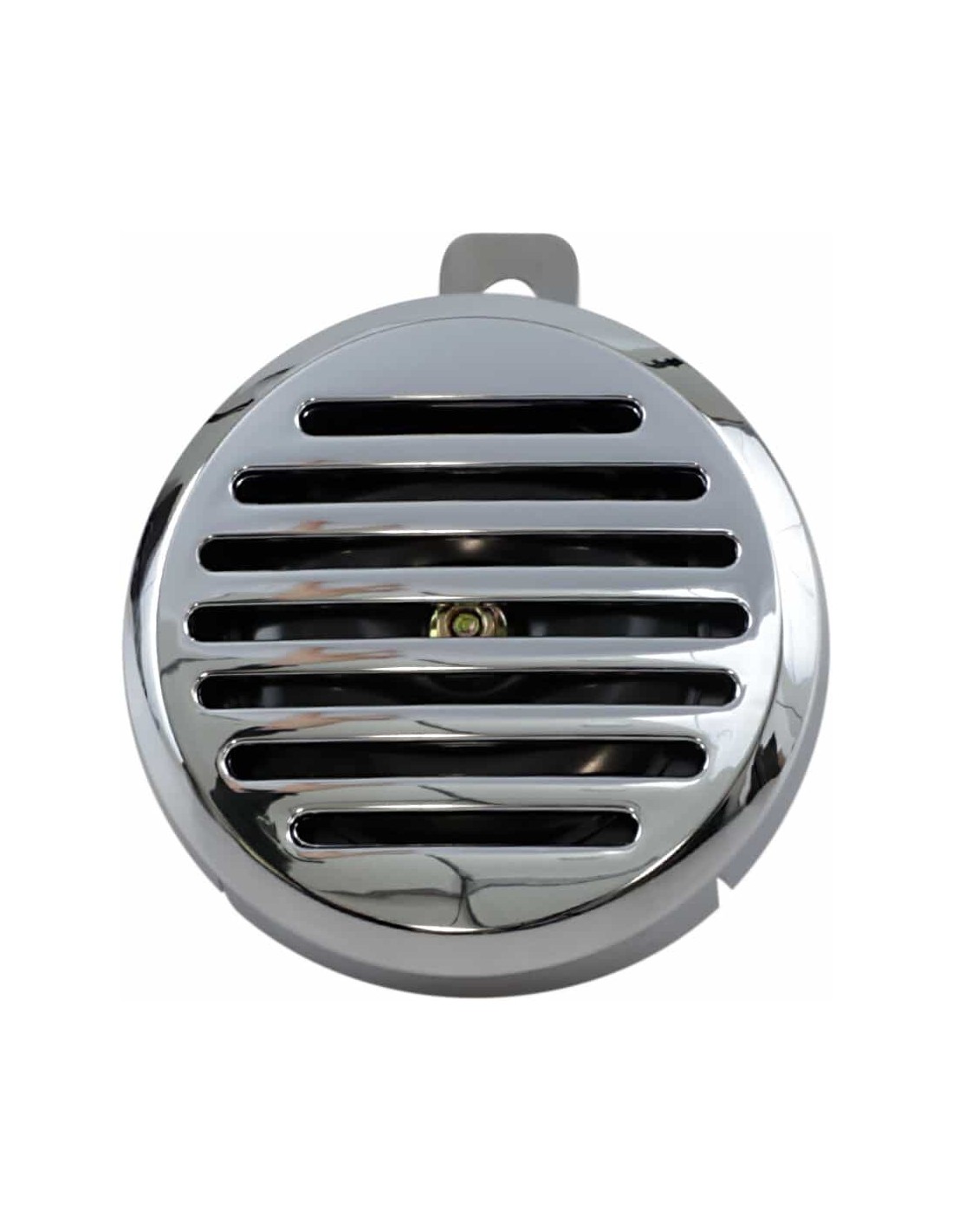 Drag SpecialtiesClacson da 12V con copriclacson cromatoIl clacson custom viene fornito con copriclacson cromato Con terminali a forcella e copriclacson stampato a iniezione Copriclacson con diametro di 3 3/8”; segnale acustico di 113 dB