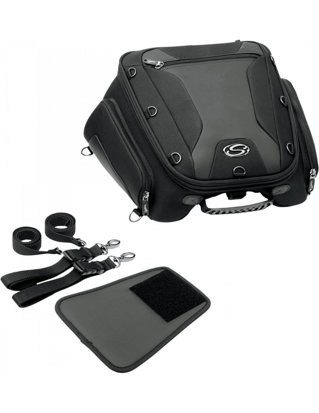 SaddlemenBorsa da sella sportcompatibile con sella posteriore/passeggero insieme al sistema di montaggio incluso robusta struttura saddletuff™ a 1200 denari per una lunga durata grande scomparto principale, abbastanza spazioso da alloggiare un laptop o un notebook tre tasche interne e tre grandi tasche esterne contengono un facile accesso quando è in movimento due tasche esterne consentono un'espansione di altri 2", mettendo a disposizione spazio aggiuntivo struttura impermeabile con coprisella antipioggia integrato i tredici anelli a doppia d esterni possono essere utilizzati per fissare altri oggetti, come una giacchetta o altre borse (i sei anelli a doppia d nascosti servono come protezione antigraffio) organizer tecnico per smartphone, videocamere digitali o lettori mp3 le cinghie a conchiglia regolabile dello scomparto principale possono essere aperti completamente a 180° pratico manico che consente di utilizzare la borsa come valigia da viaggio quando non è montata sulla moto la struttura semirigida mantiene la forma, per una guarda sempre al top anche quando è vuoto il sistema di montaggio incluso dispone di cinghie aggiuntive per una maggiore sicurezza; una volta fissate all'area della sella passeggero le borse possono essere rimosse e reinstallate in pochi secondi mediante una serie di bloccaggi a camme presenti sulla parte esterna compatibile con tutte le moto dotate di sella passeggero larga 9" o di dimensioni più ridotte