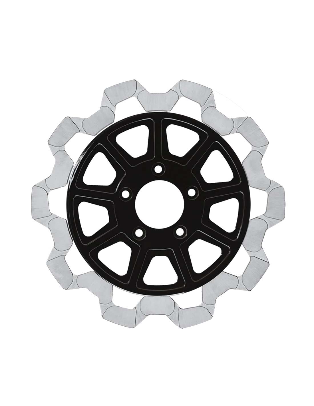 Lyndall BrakesAnteriore per disco singolo o doppio di Sportster 2000-2013, Touring 2000-2007, Dyna 2000-2005 e Softail 2000-2014. Montano anche anteriormente su tutti i modelli 1984-1999 se installati con l'adattatore ZPN 144107I dischi montati su mozzo hanno un diametro esterno di 11 1/2" (292mm), diametro interno 2 7/32" (56.4mm) e fori di montaggio scalinati da 5/16" con un pattern di 5x3,25"(82.6mm), Disegno-Bow Tie con centro nero e anello di attrito finito a macchina