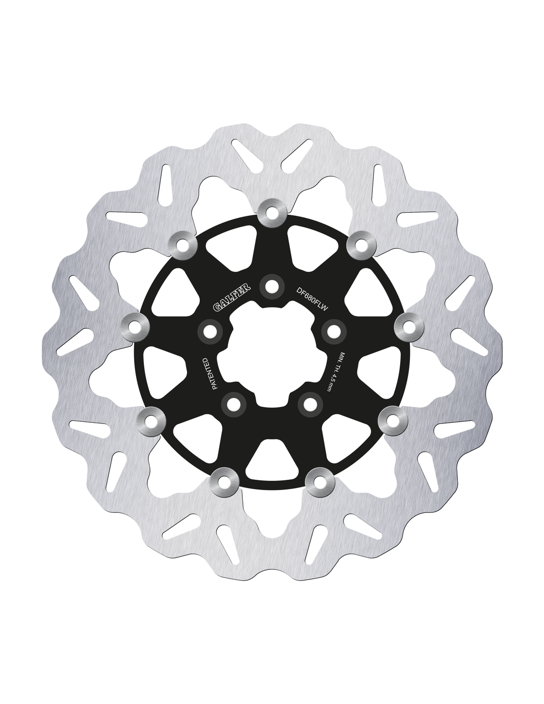 Galfer Performance BrakesAnteriore per Sportster XL 2000-2013, Touring 2000-2007, Dyna 2000-2005 e Softail 2000-2014 Il disco ha un diametro esterno di 11 1/2", un diametro interno di 2 7/32" e 5 fori di montaggio scalinati da 5/16" su un circonferenza di 3 1/4", Disco flottante Wave